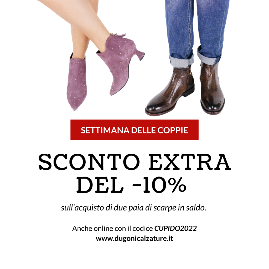 Dal 11 al 19 febbraio sconto extra -10% * sull’acquisto di due paia di scarpe in saldo.