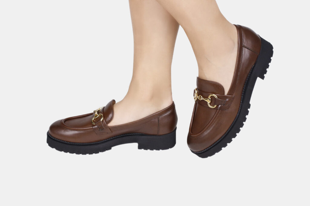Per chi invece predilige il gusto del cioccolato al latte, impossibile non scegliere il mocassino in pelle marrone con accessorio. Perfetto per il look quotidiano ma con quel dettaglio dorato presente sul collo del piede. Come se fosse una pralina al cioccolato al latte con scaglie d’oro.