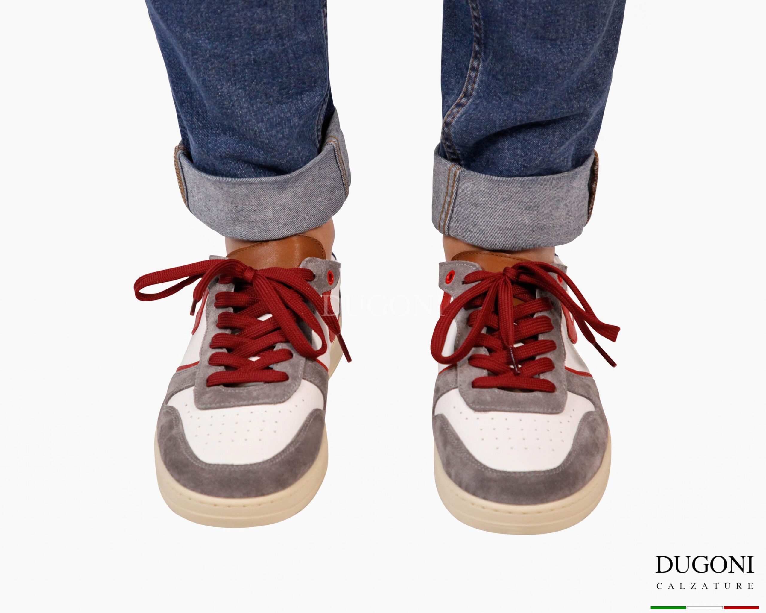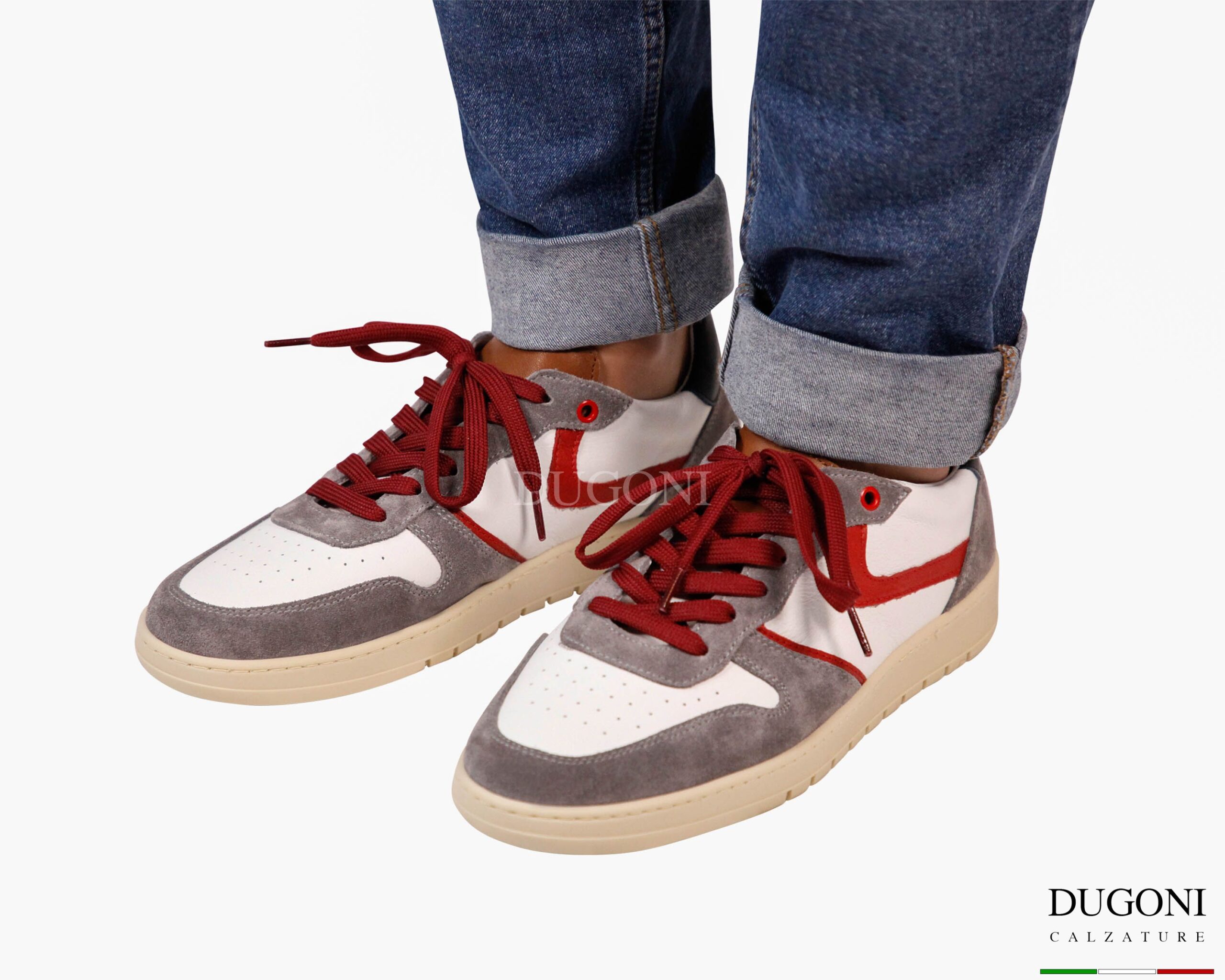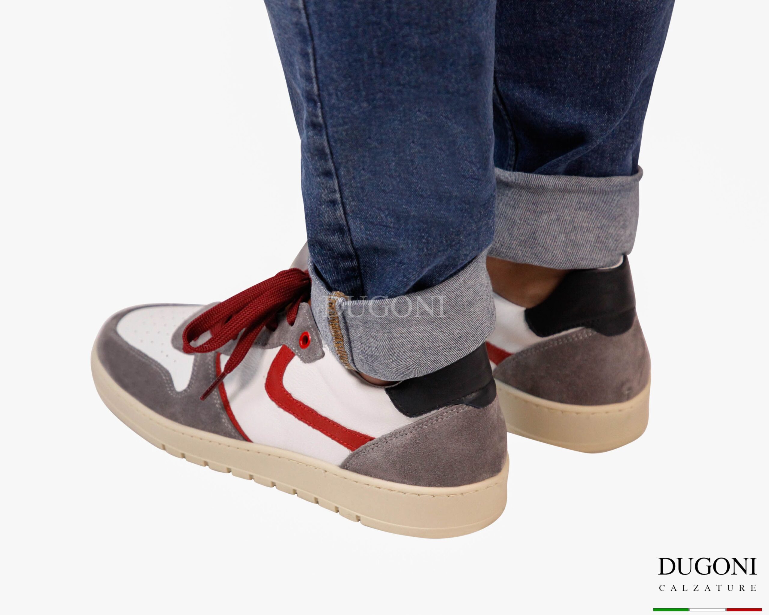 Sneakers bianca&grigia con lacci bordeaux _ DUGONI