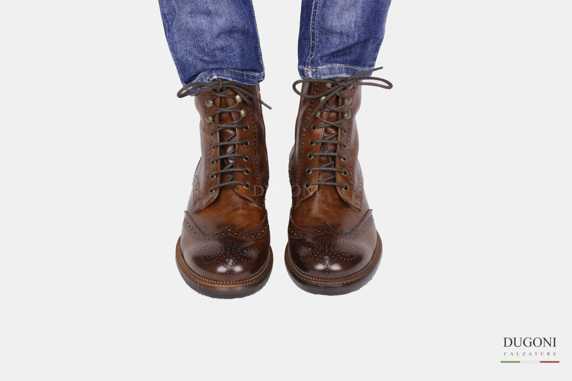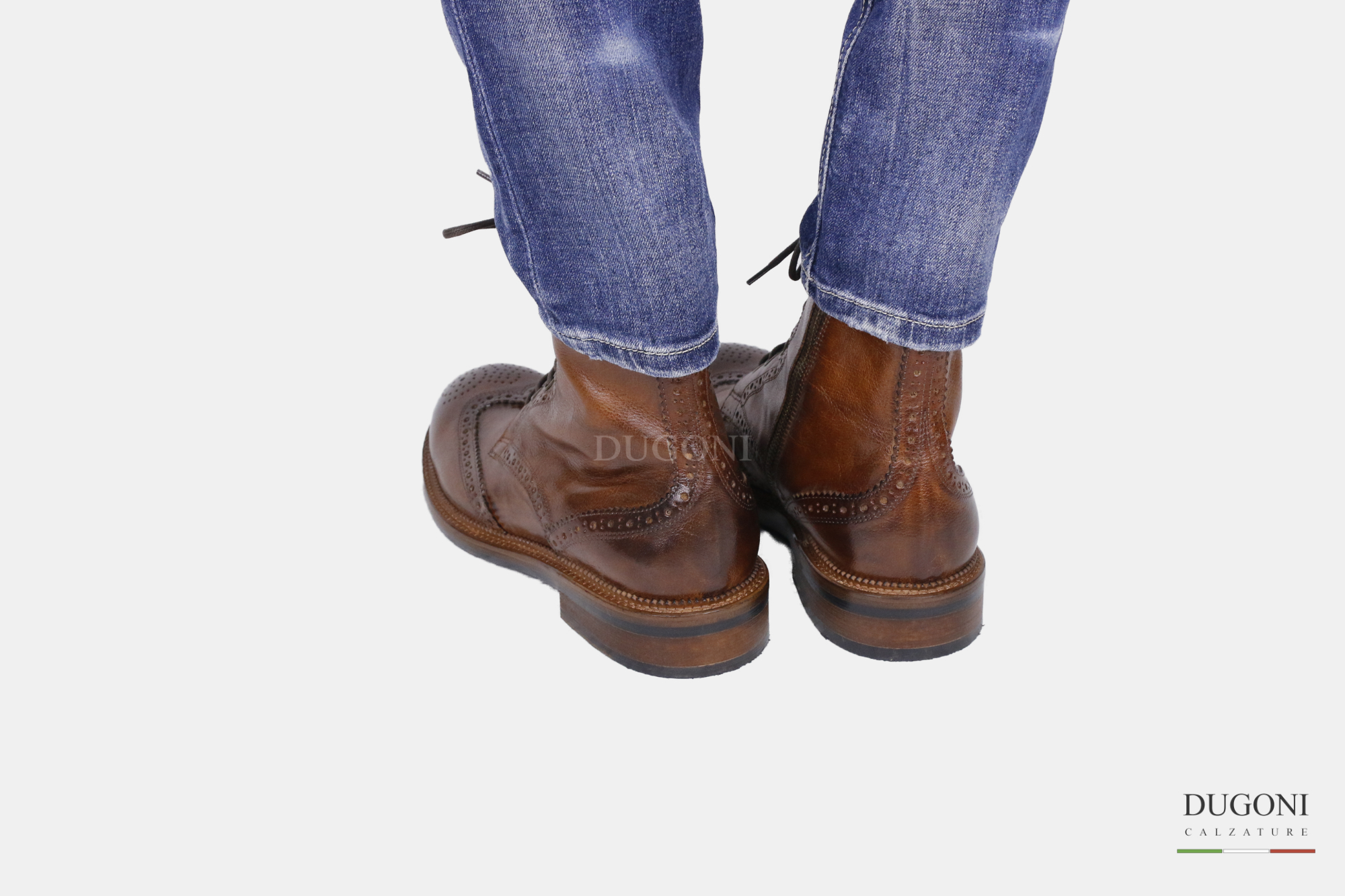 Anfibio in pelle marrone chiaro con lavorazione all’inglese. Cerniera interna.