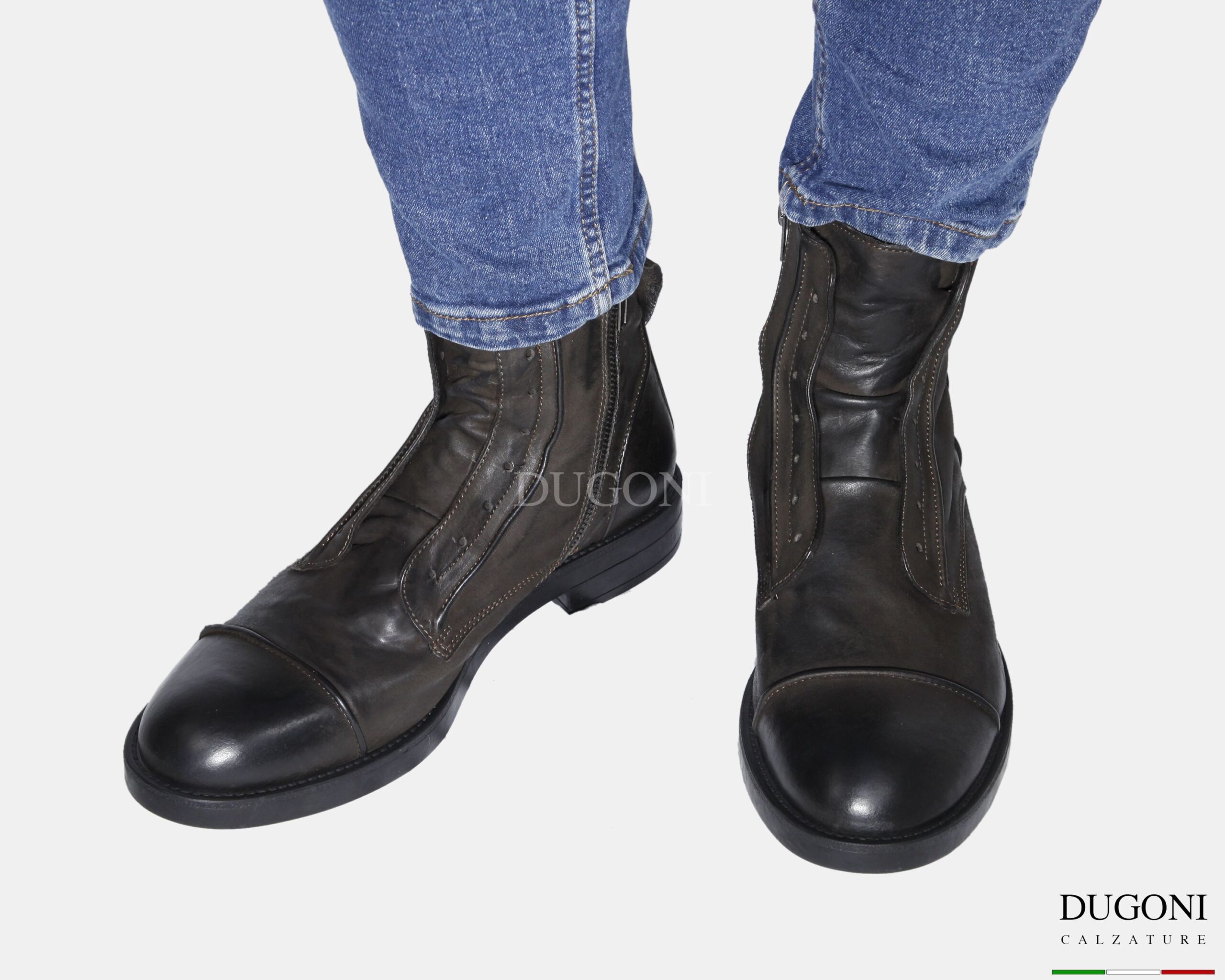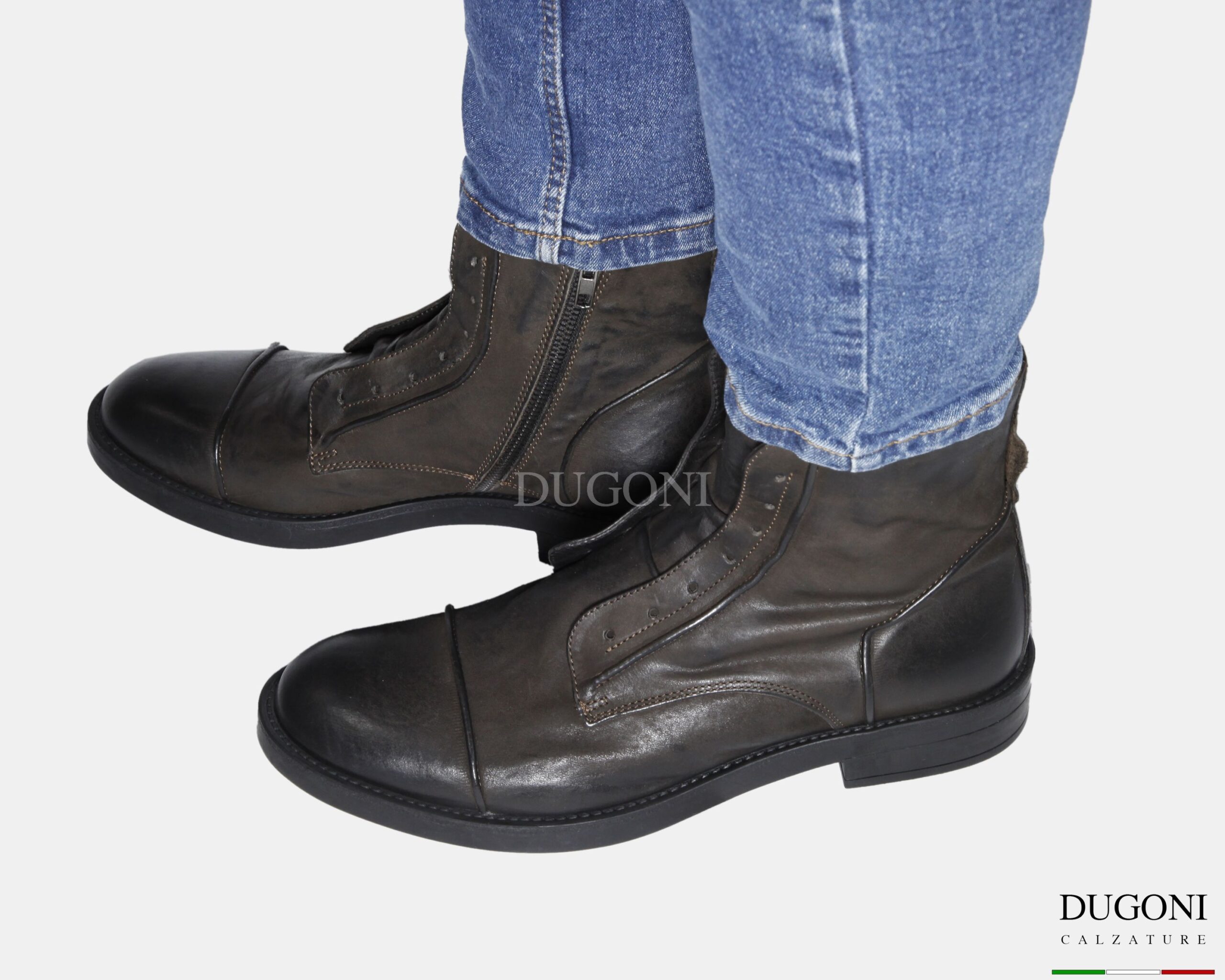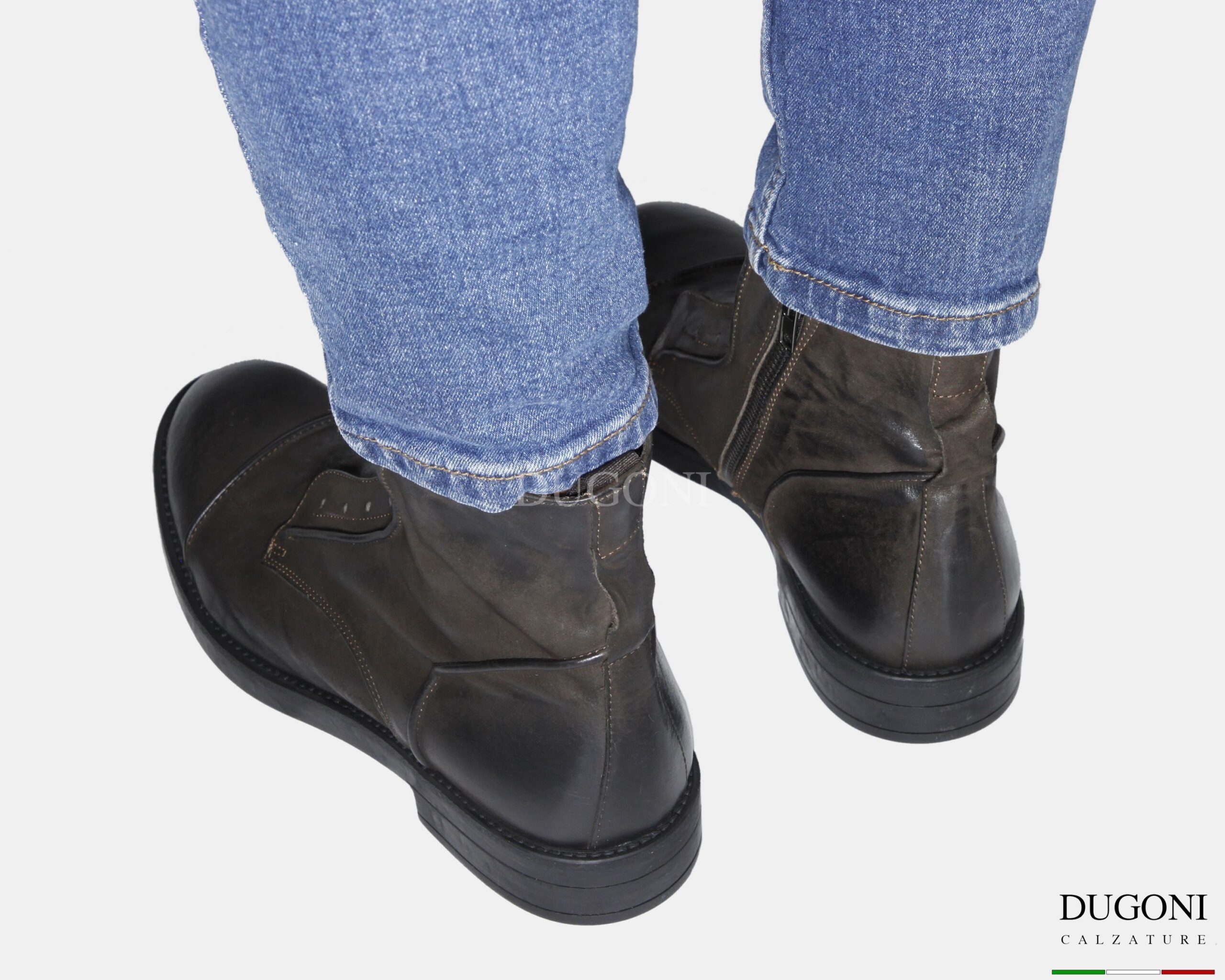 Anfibio Pawelk’s in pelle vintage marrone, senza lacci . Cuciture in tinta. La suola cucita, è in gomma leggera e flessibile.
