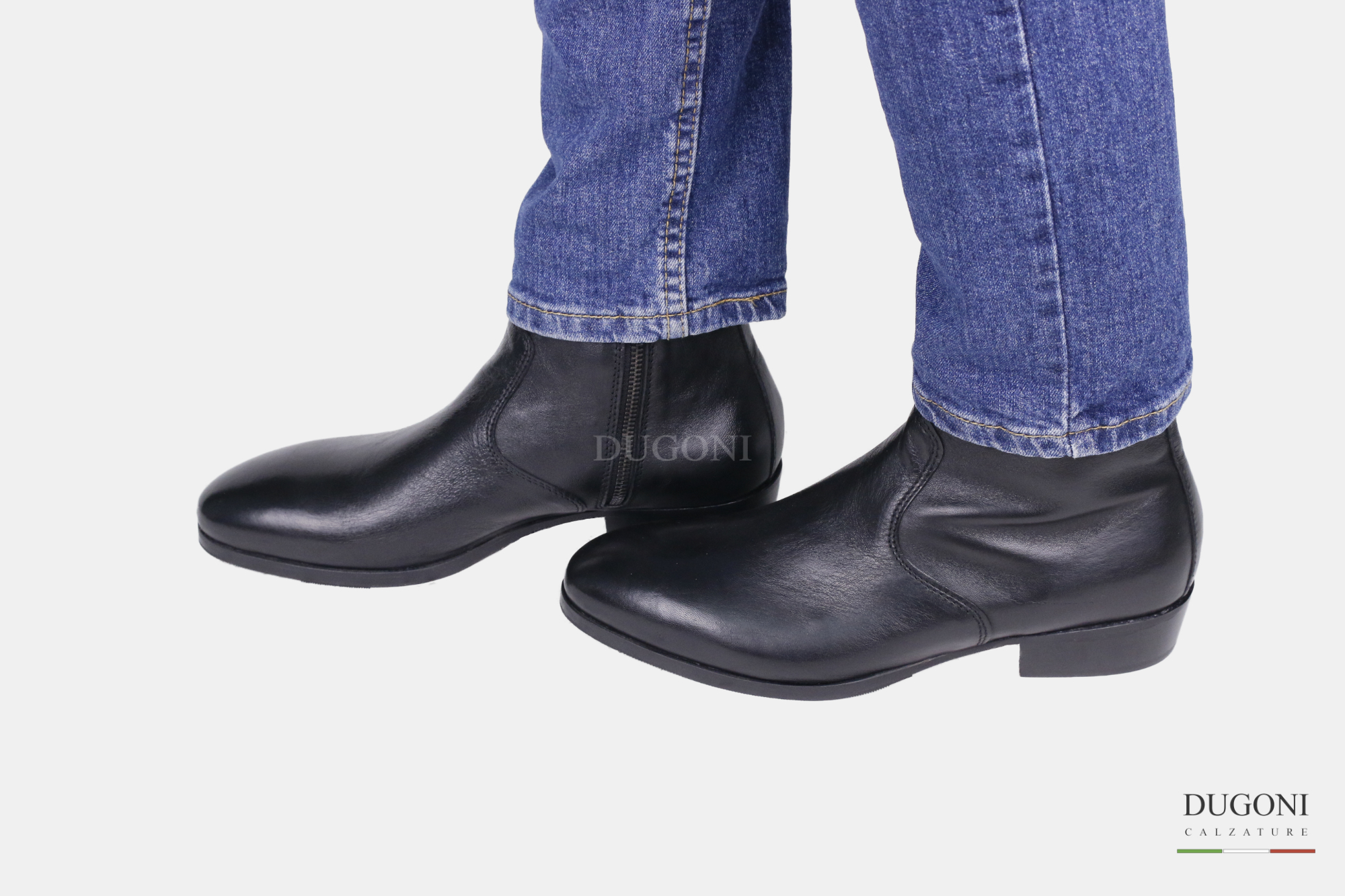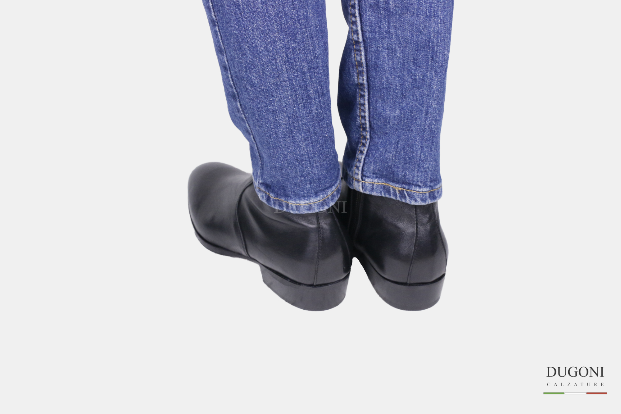 Stivaletto texano in pelle nera con cerniera interna. Fondo cuoio mezza gomma. Tacco cuoio.