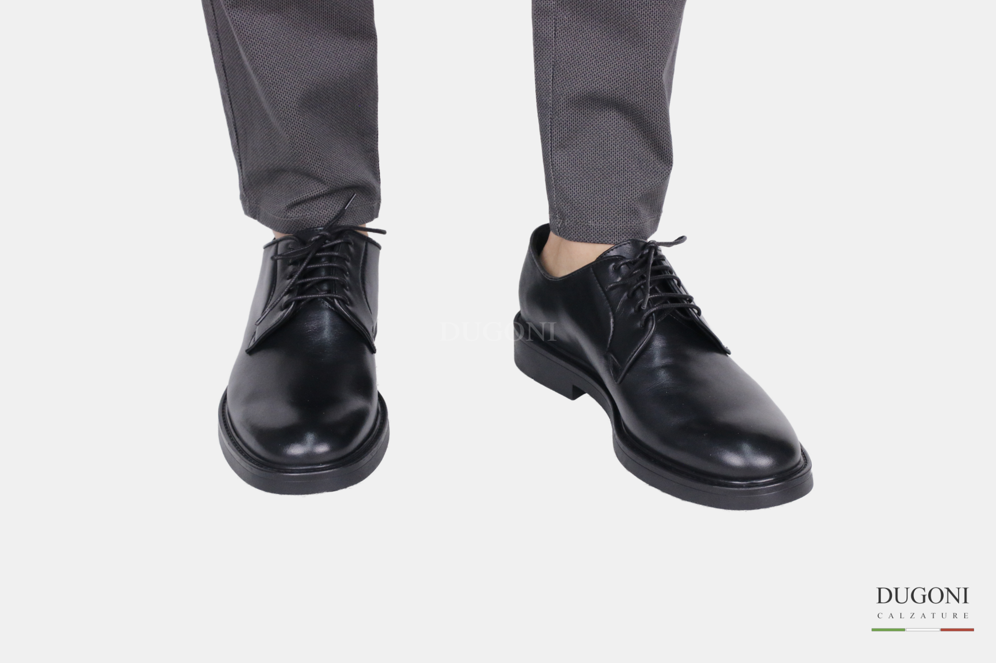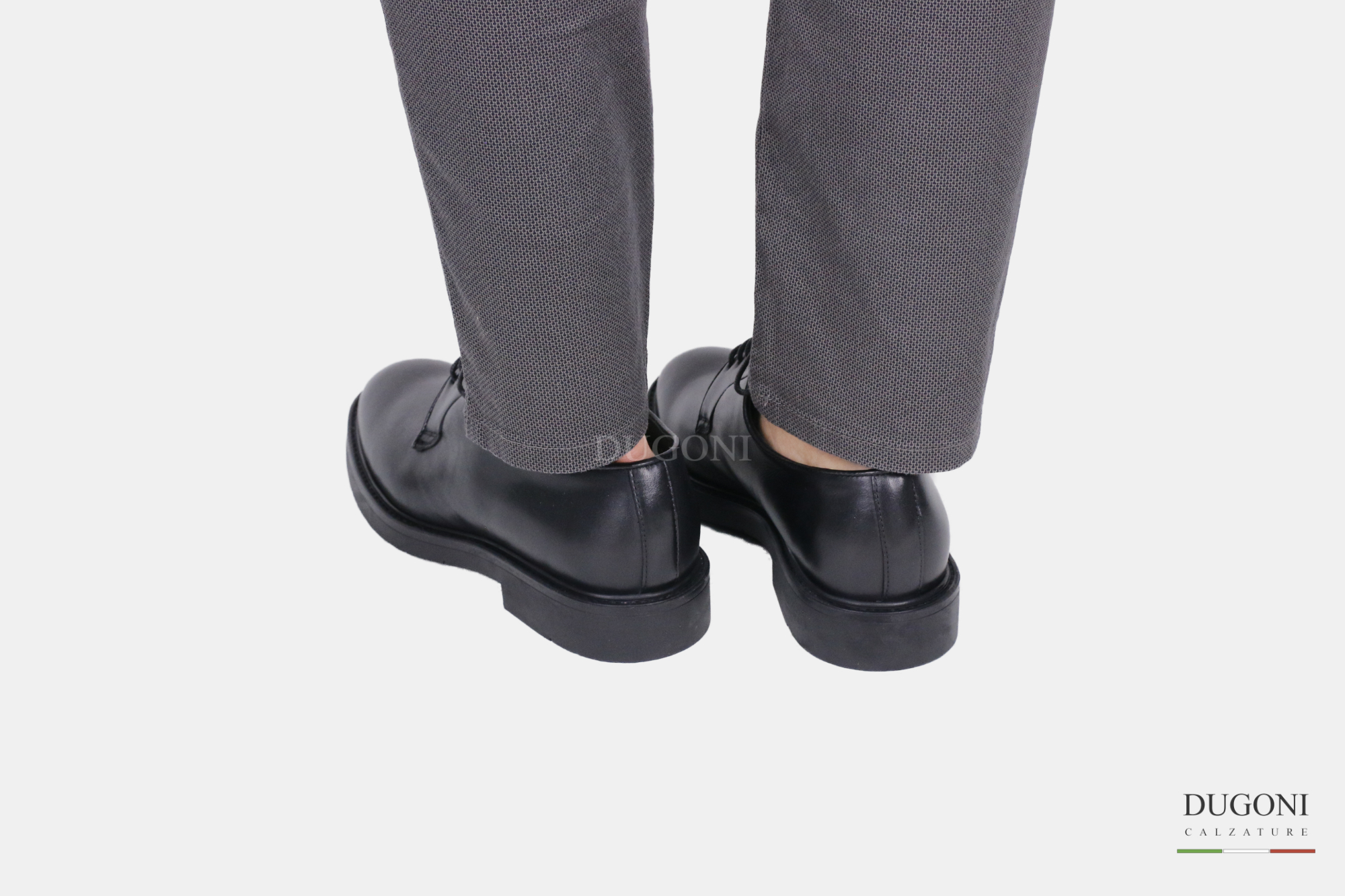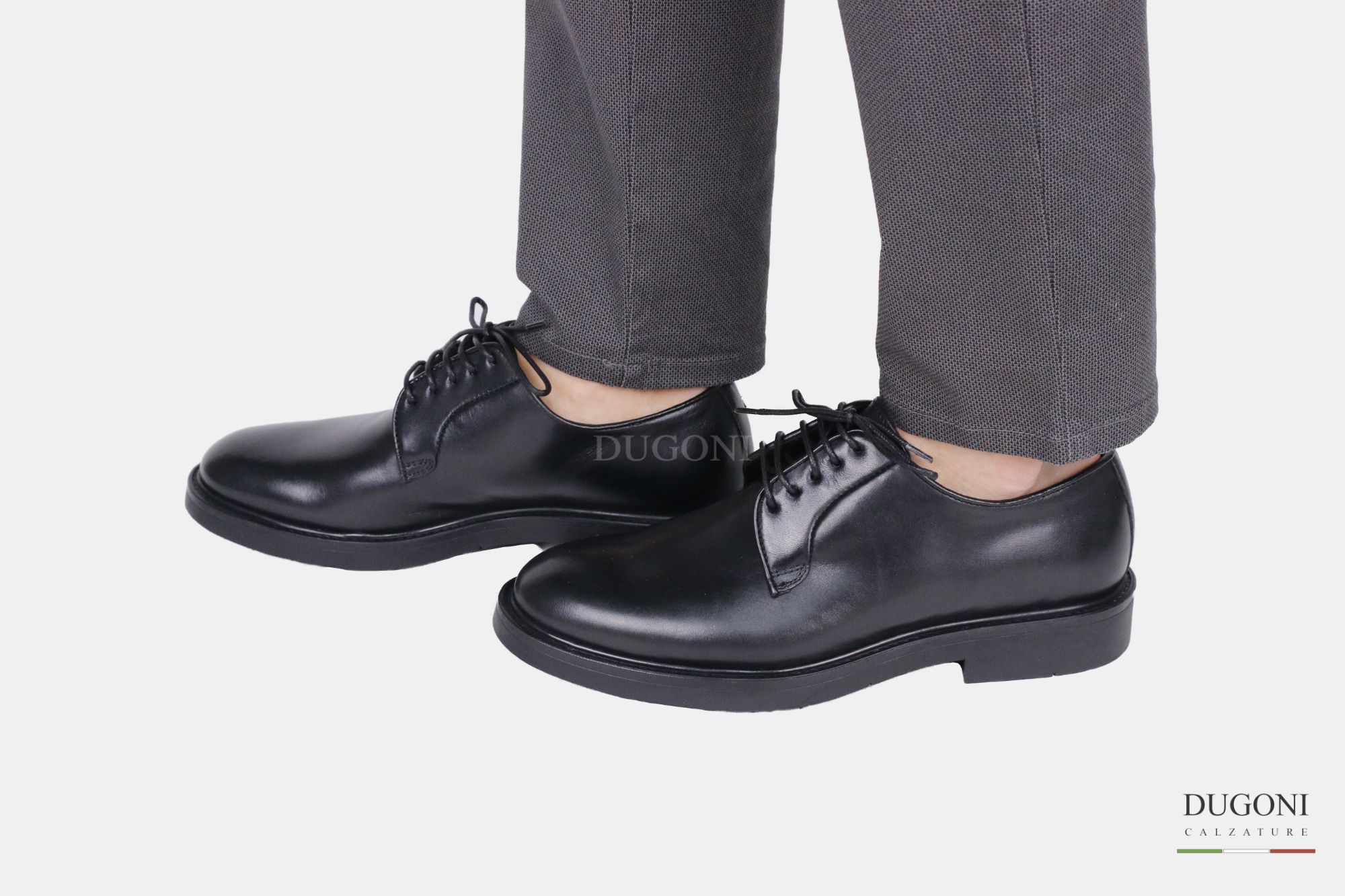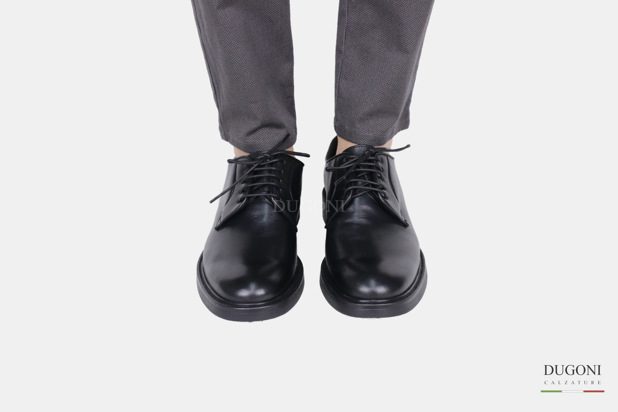 Stringata in pelle nera liscia BRECOS. Fondo gomma.
