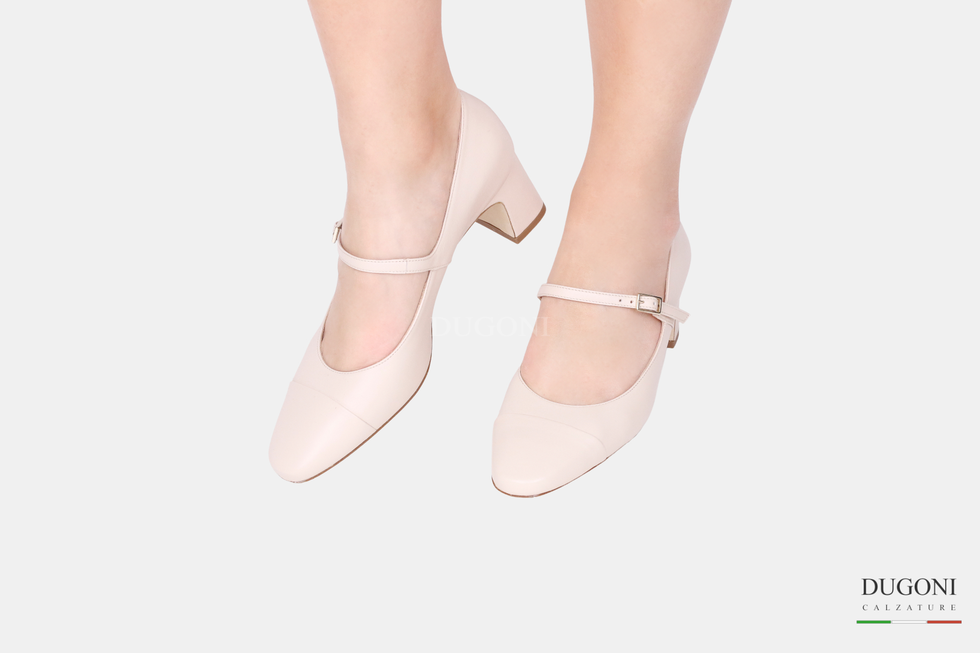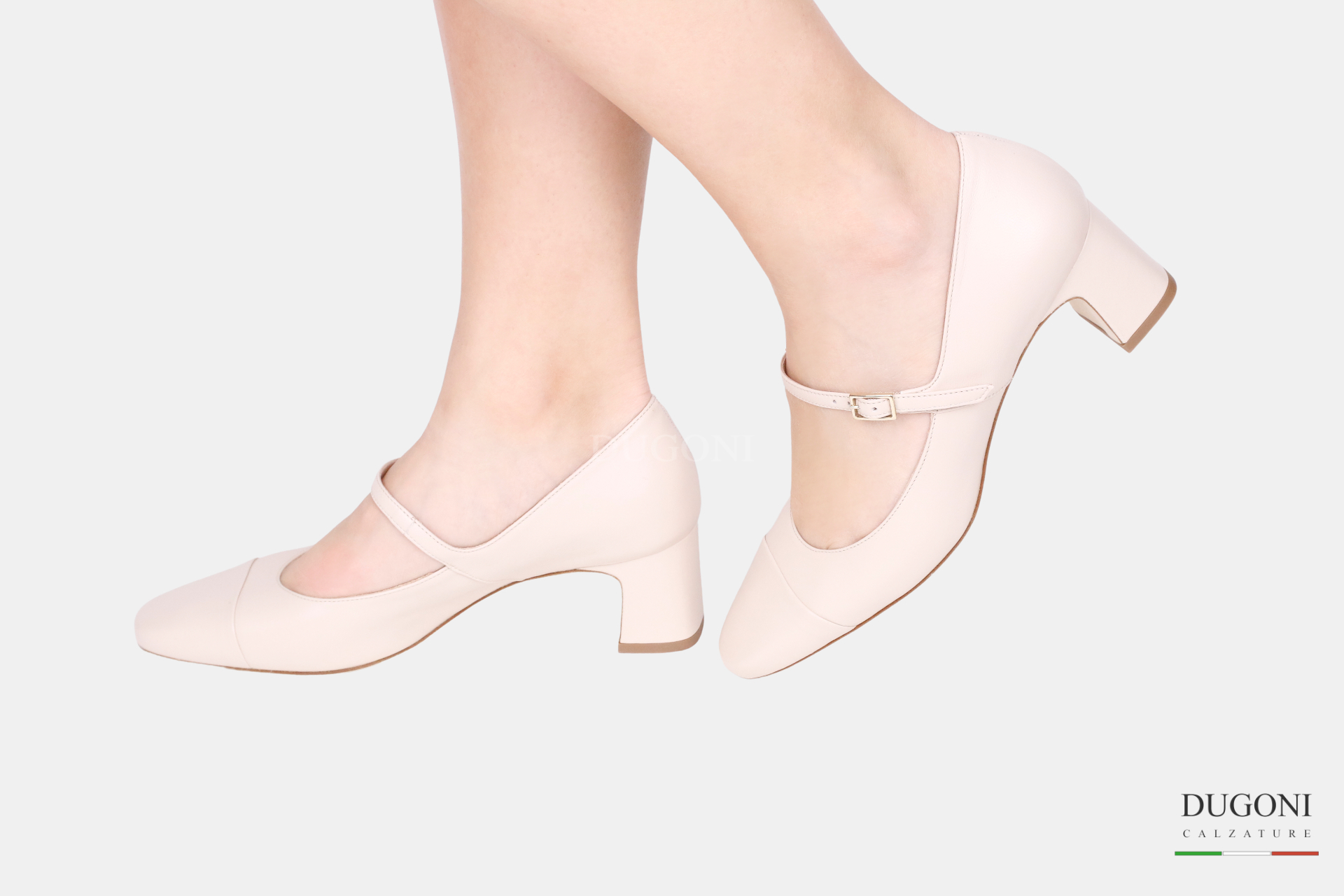 Mary Jane in pelle nude, puntale con cuciture rigirate . Suola in cuoio, tacco a coda ricoperto in tinta.