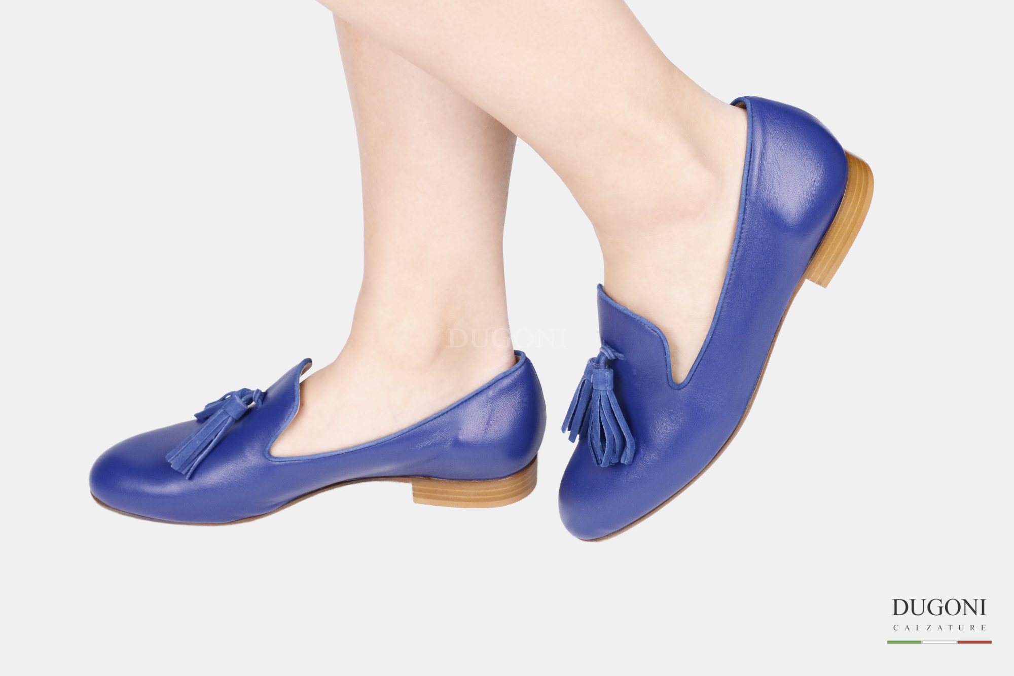 Mocassino in pelle bluette con nappine -lavorazione a sacchetto- Cristy Italy D1754