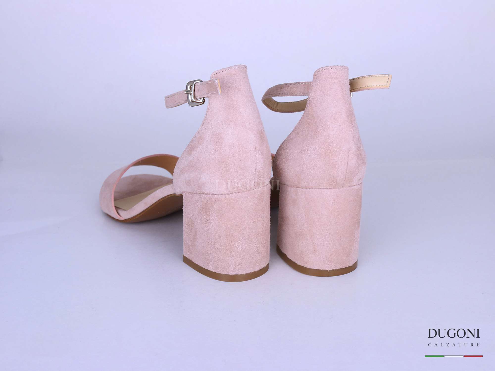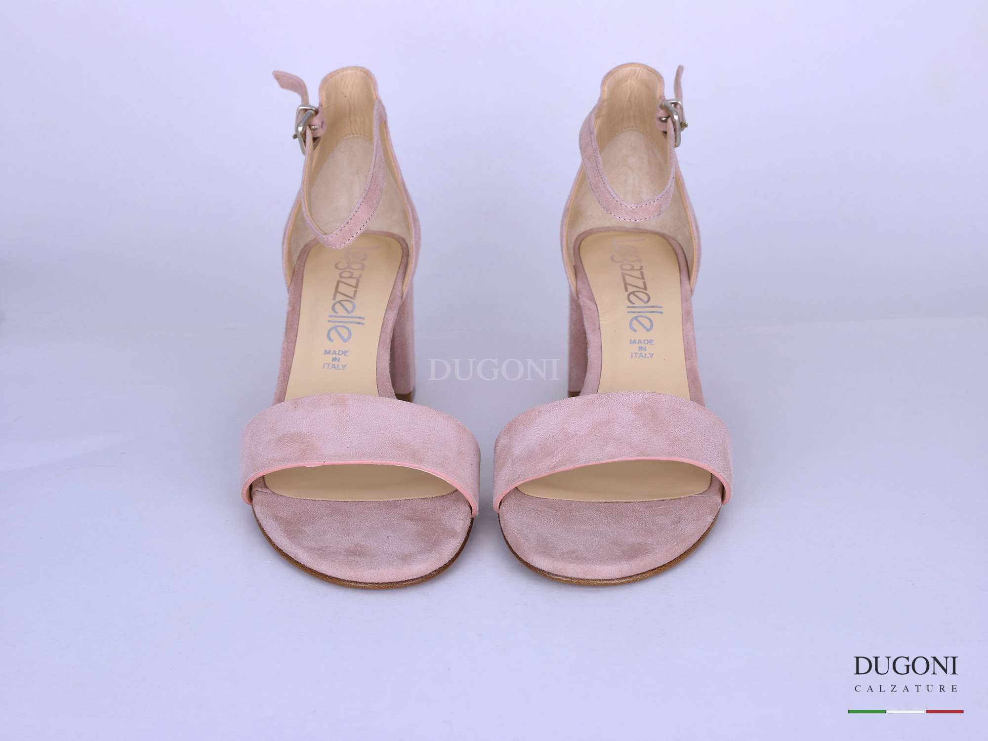 Sandalo con una fascetta in camoscio rosa antico. Tallone chiuso e cinturino alla caviglia regolabile