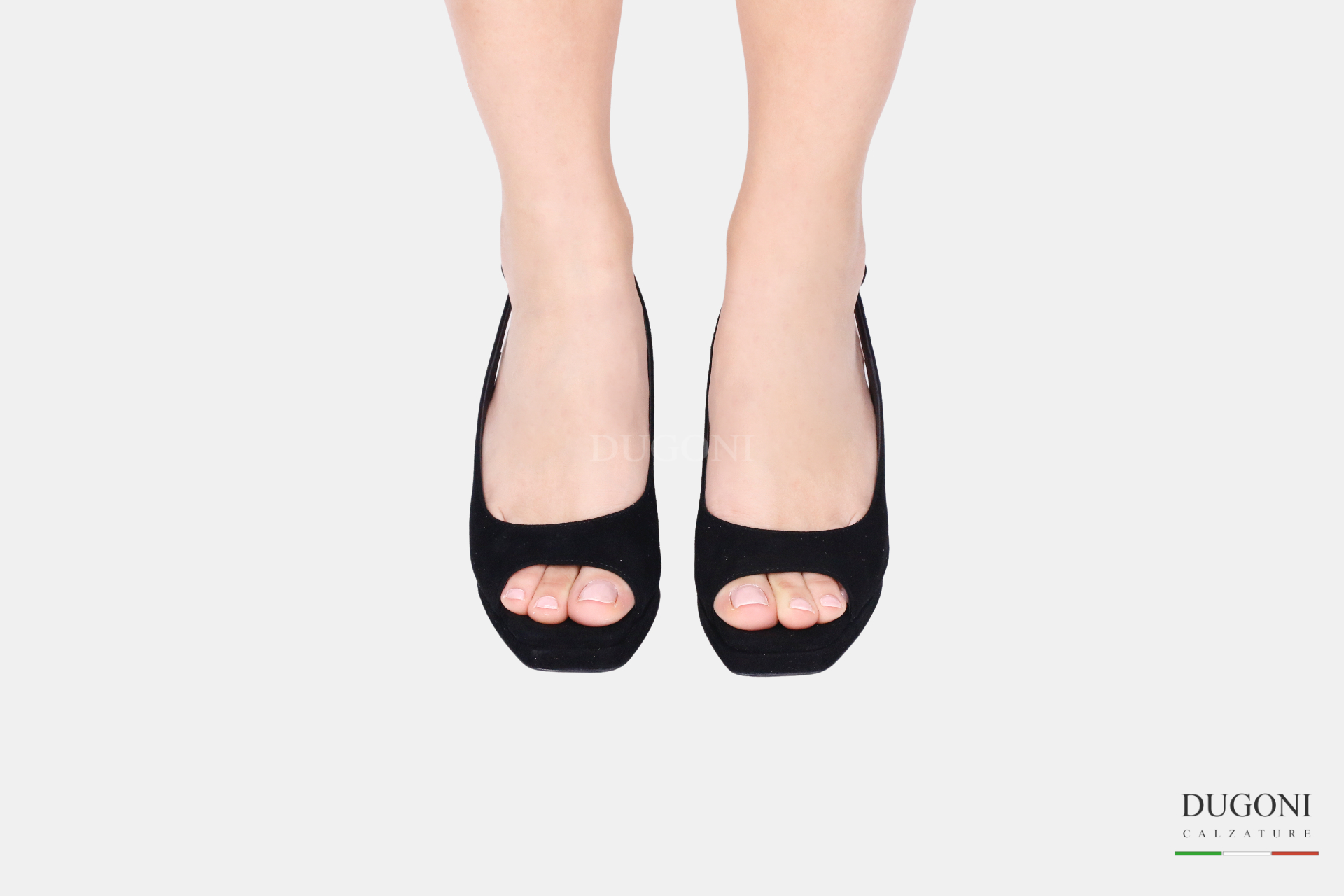 Slingback spuntata in camoscio color nero. Con cinturino regolabile. Tacco a rocchetto.