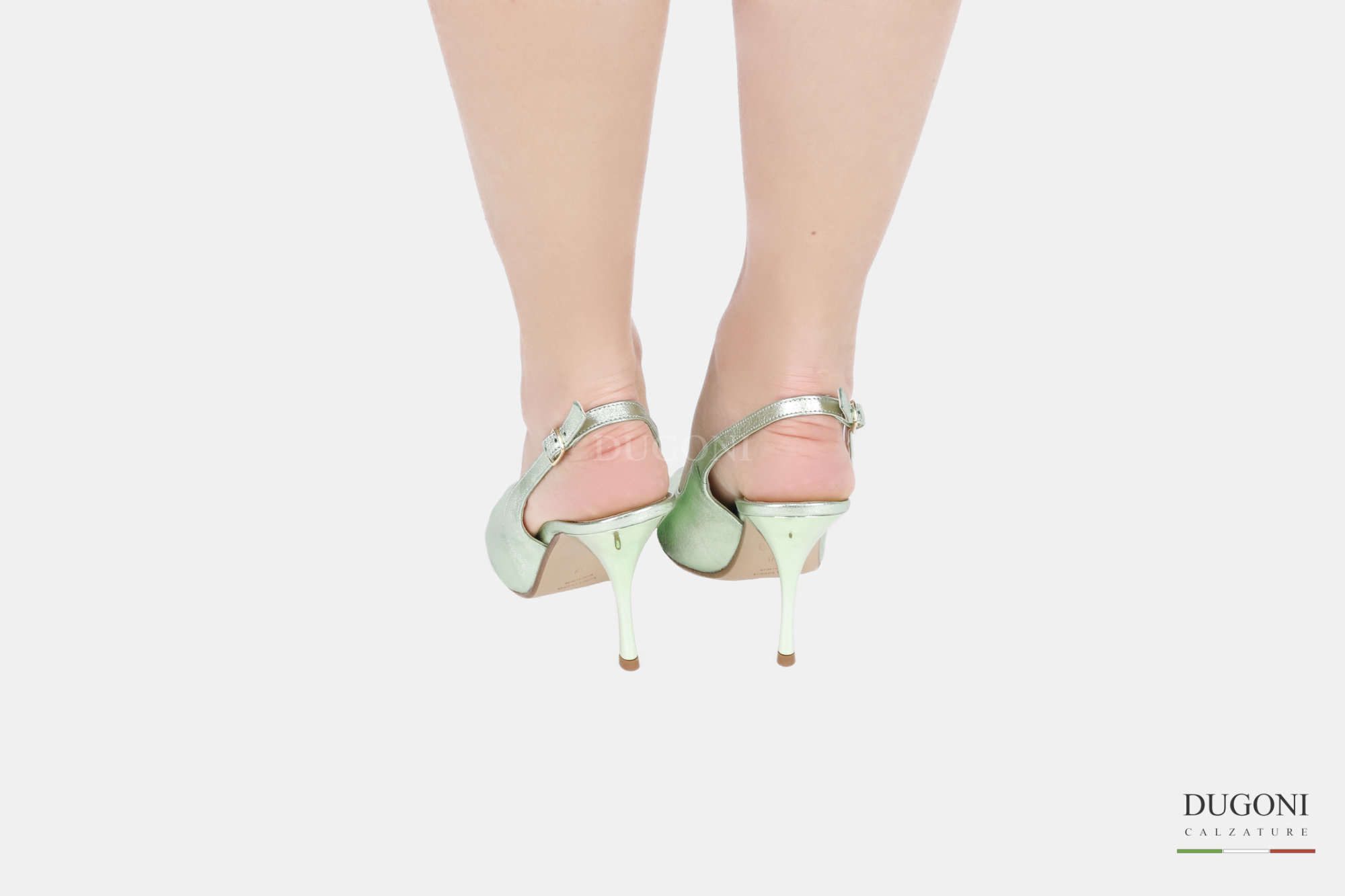 Slingback spuntato in pelle laminata verde menta.