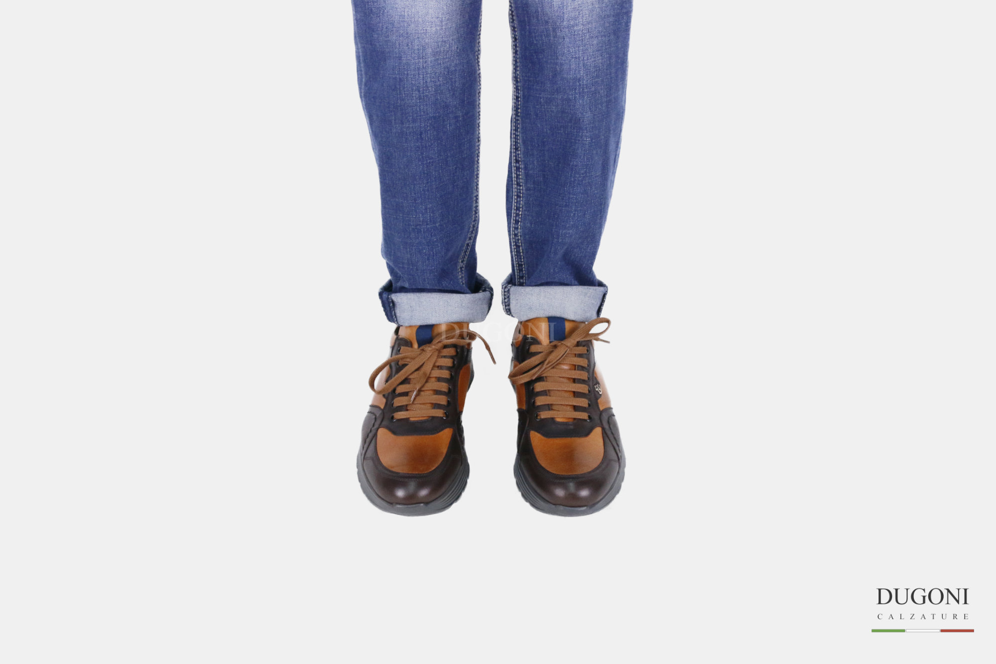 Sneakers in nappa glove morbidissima , bicolor cuoio e marrone. Allacciatura francesina.