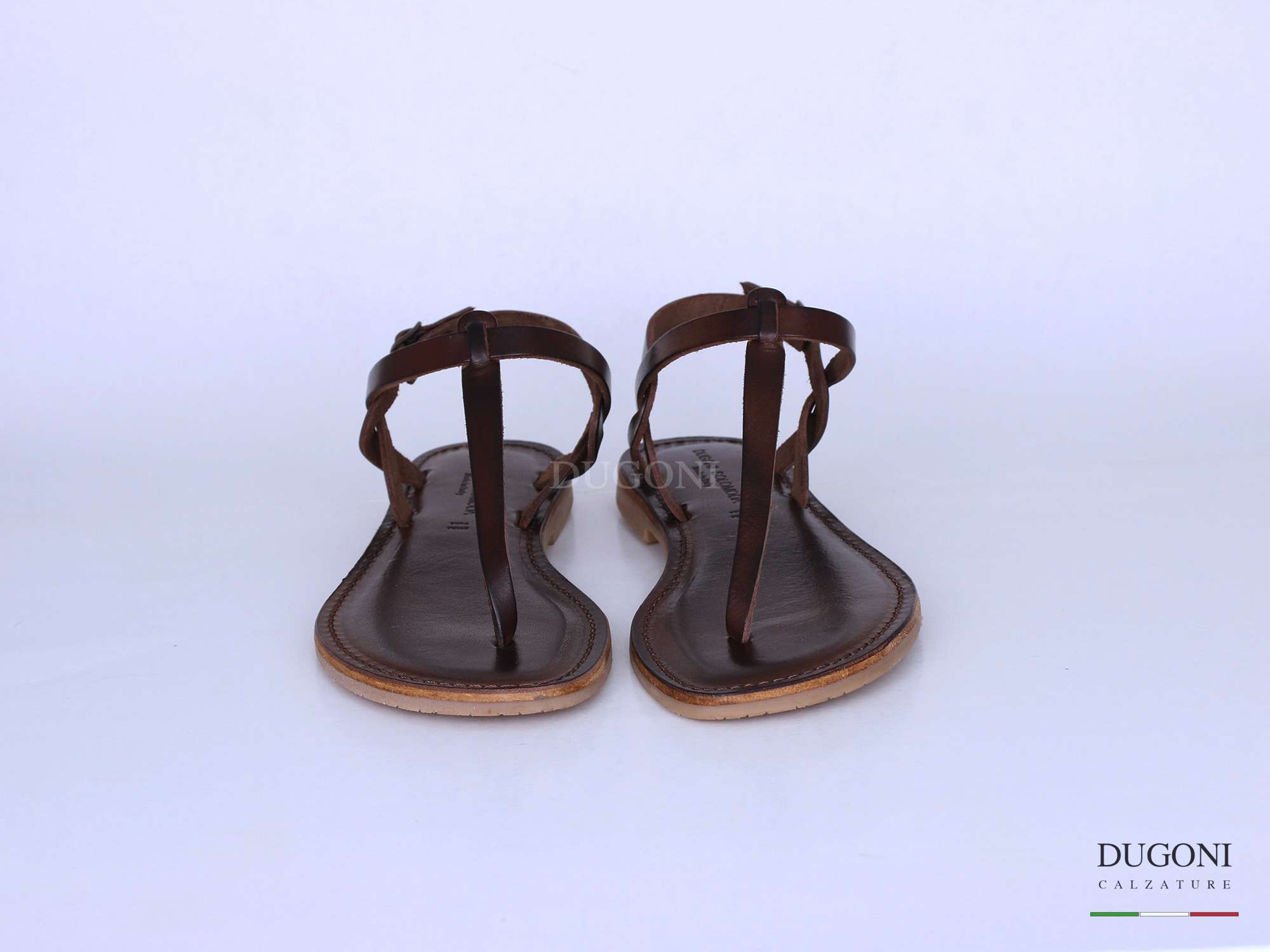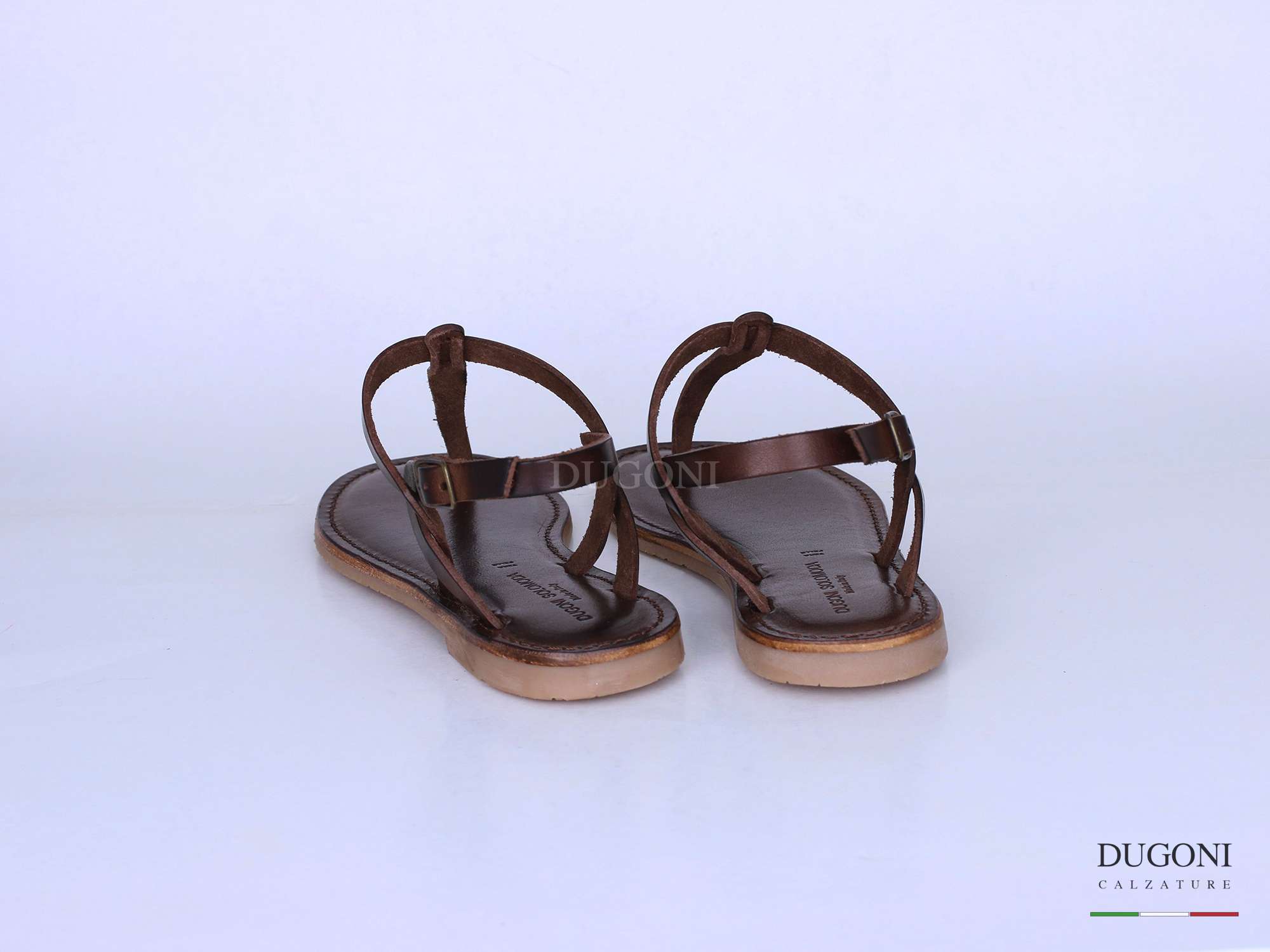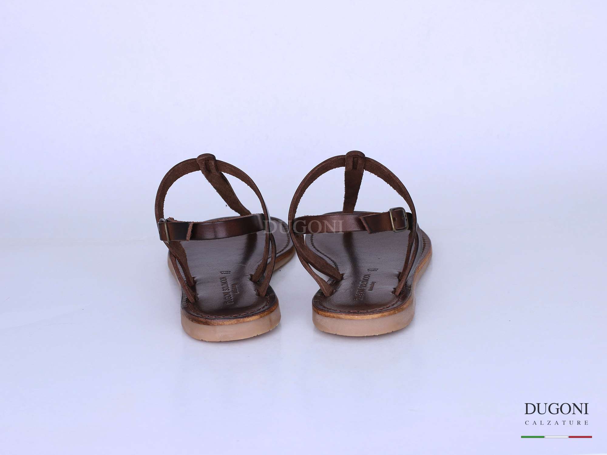 Sandalo infradito in pelle marrone, sottopiede imbottito e cucito. Fondo gomma antiscivolo .