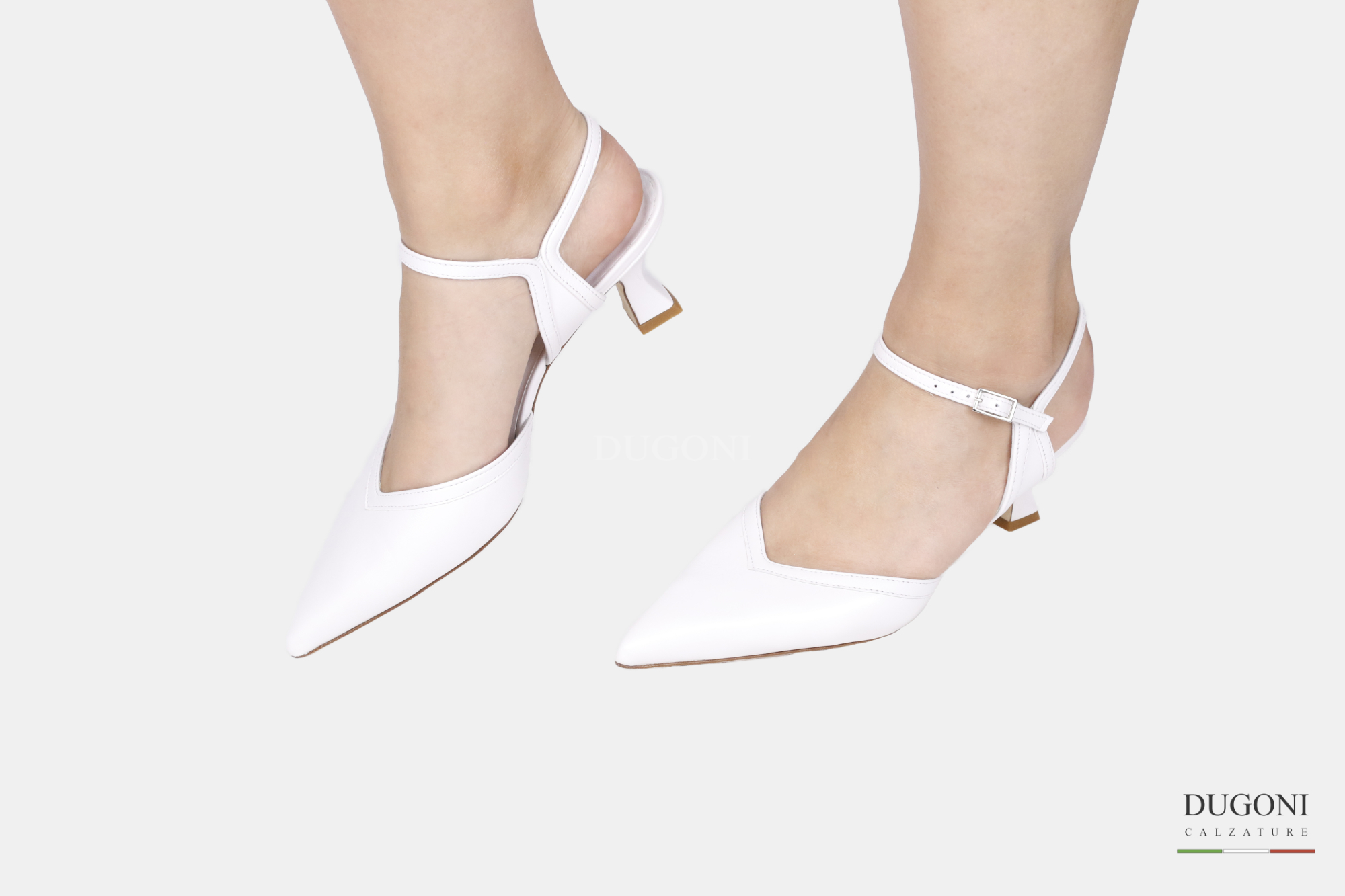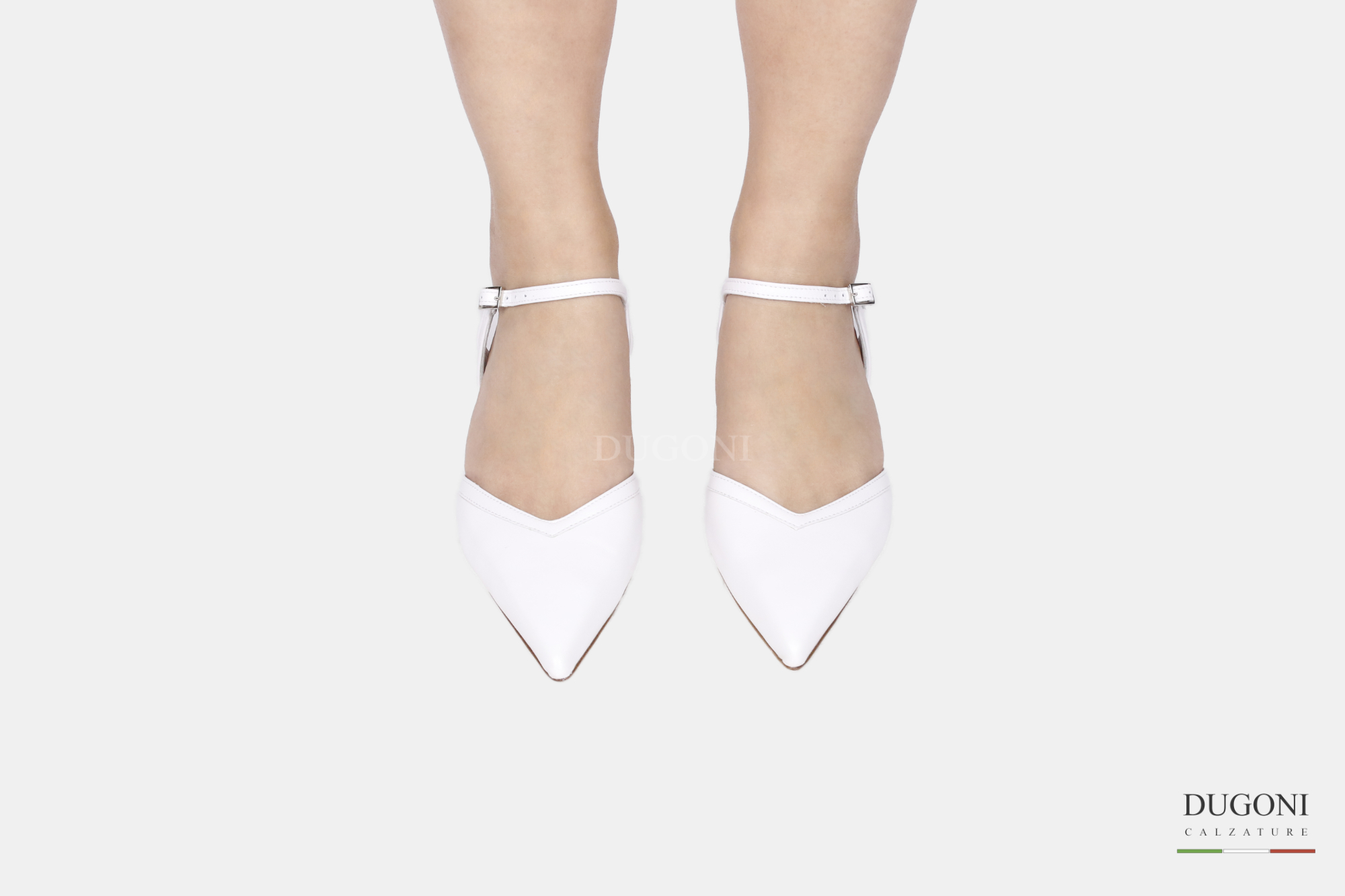 Mary Jane con scollo a cuore in pelle bianco e cinturino regolabile. Tacco a rocchetto ricoperto in tinta.