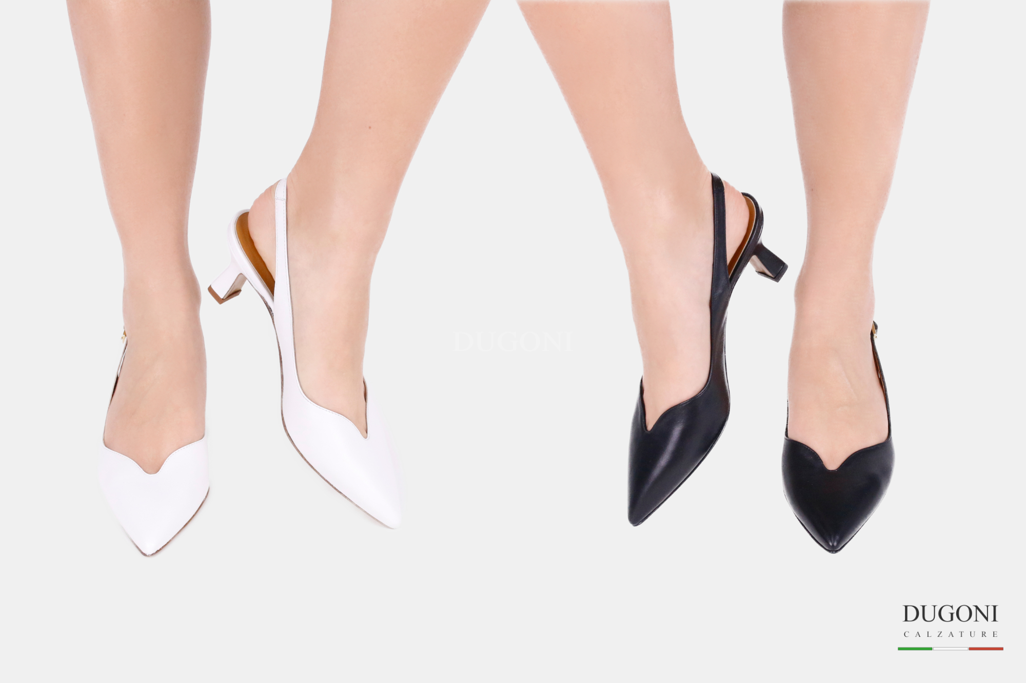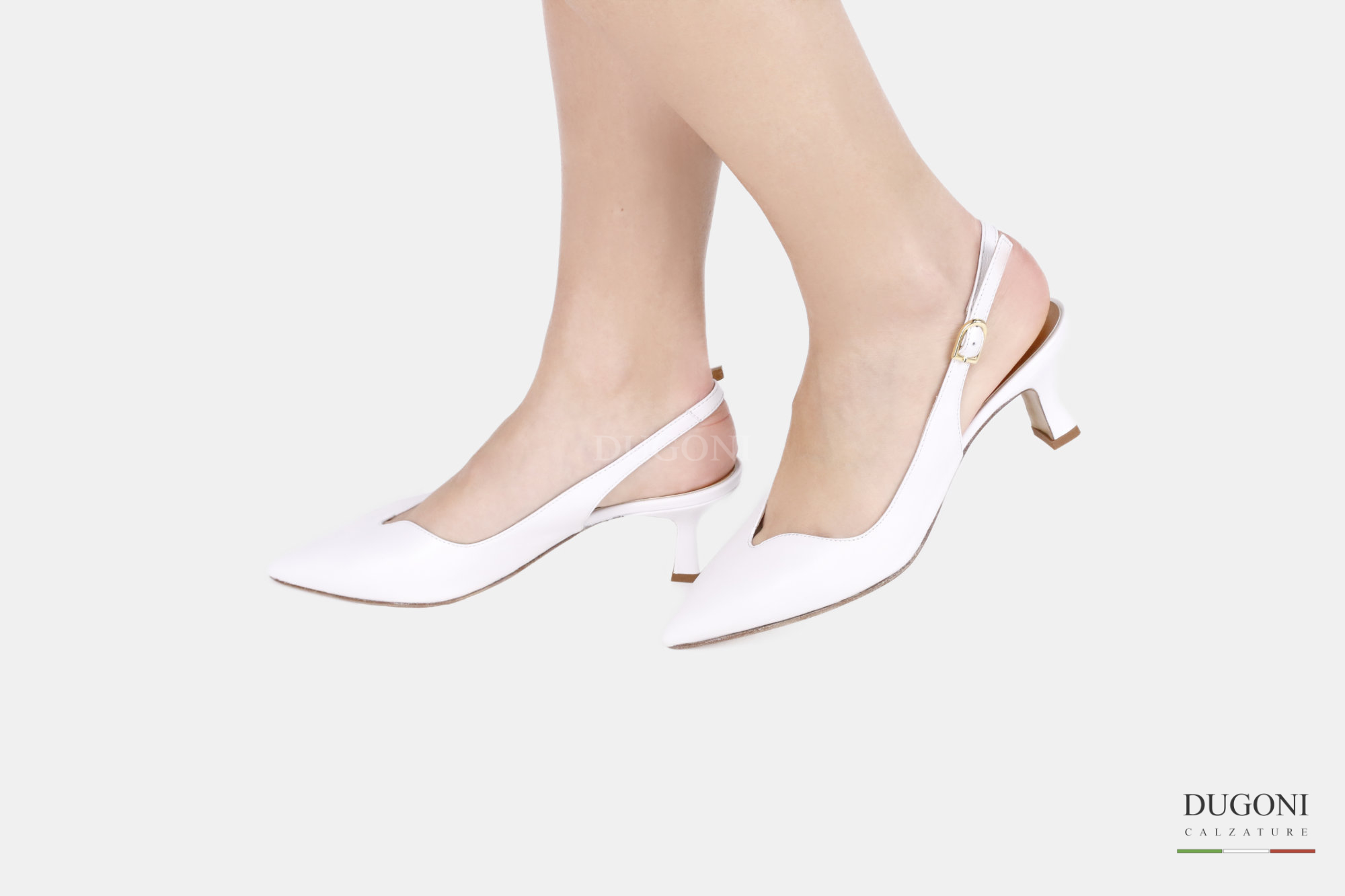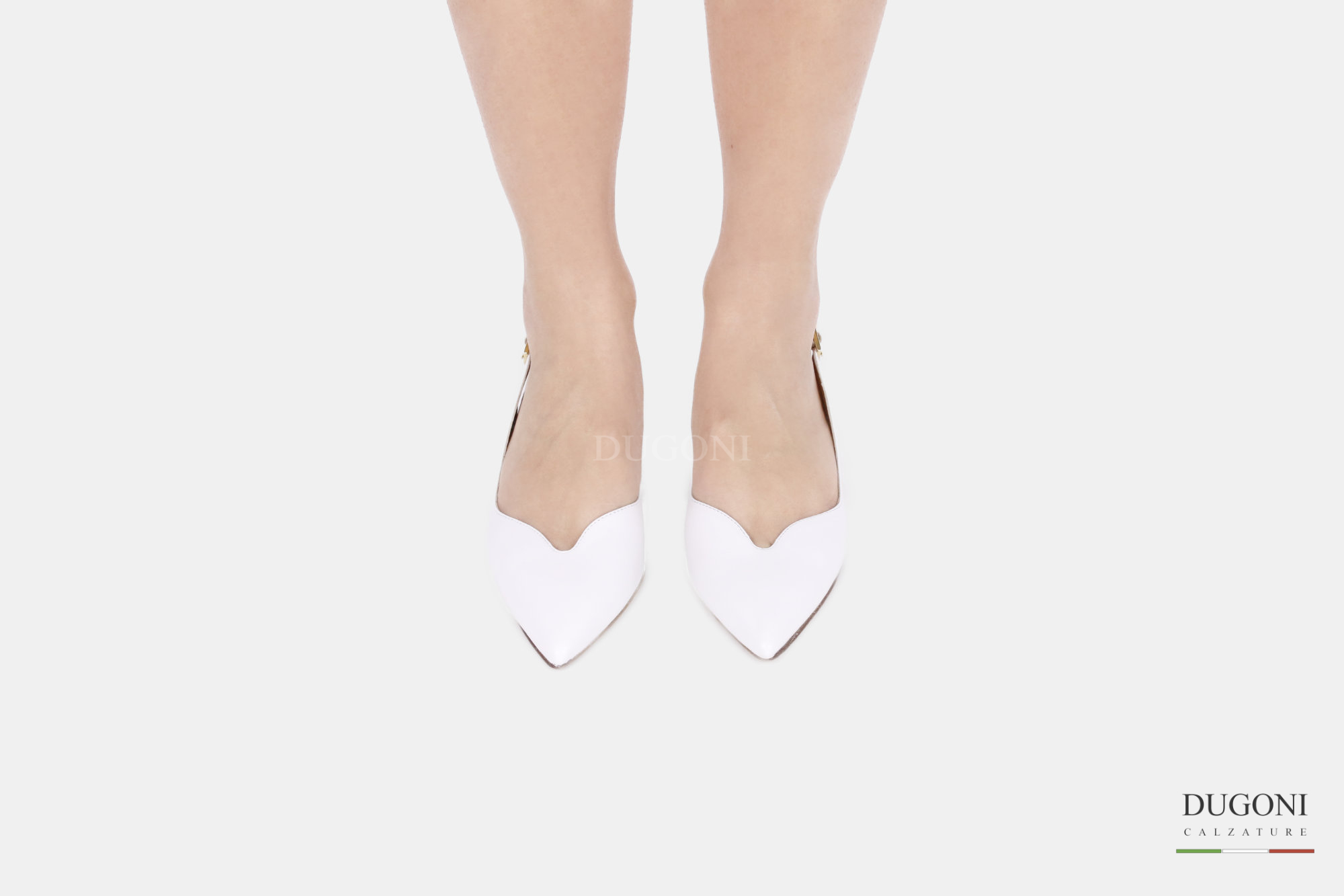 Slingback con scollo a cuore in pelle morbida colore bianco ottico. Cinturino regolabile.