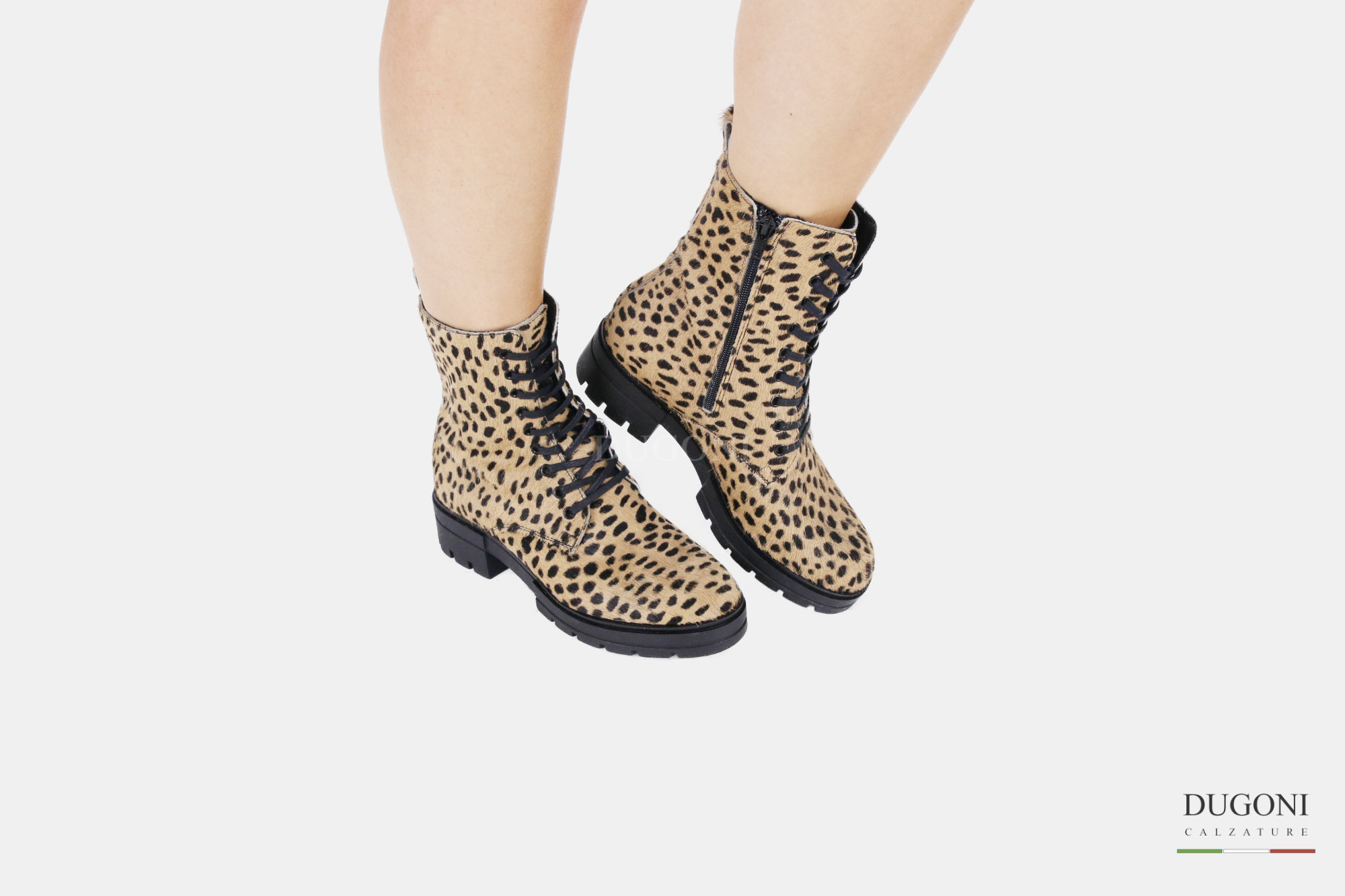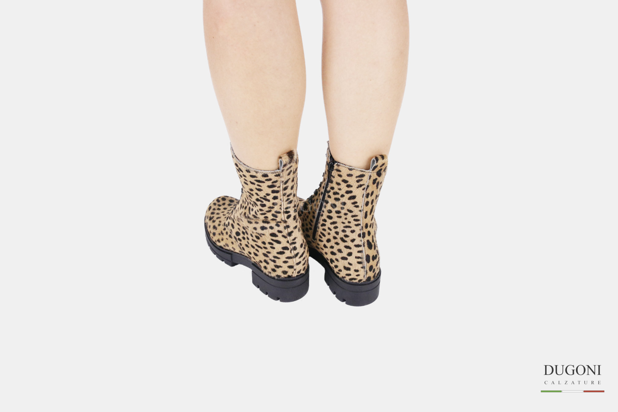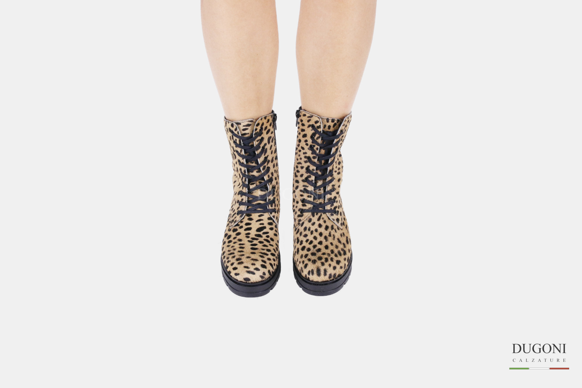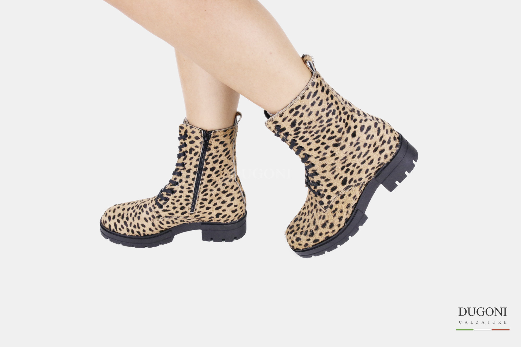 Anfibio in cavallino leopardato . Cerniera interna.  Suola carrarmato in gomma.