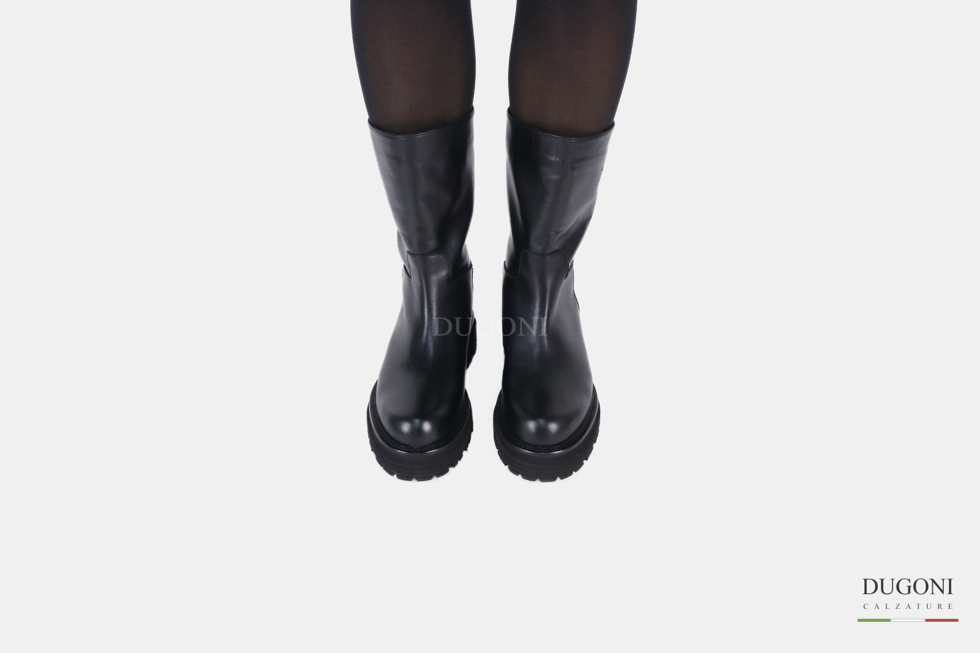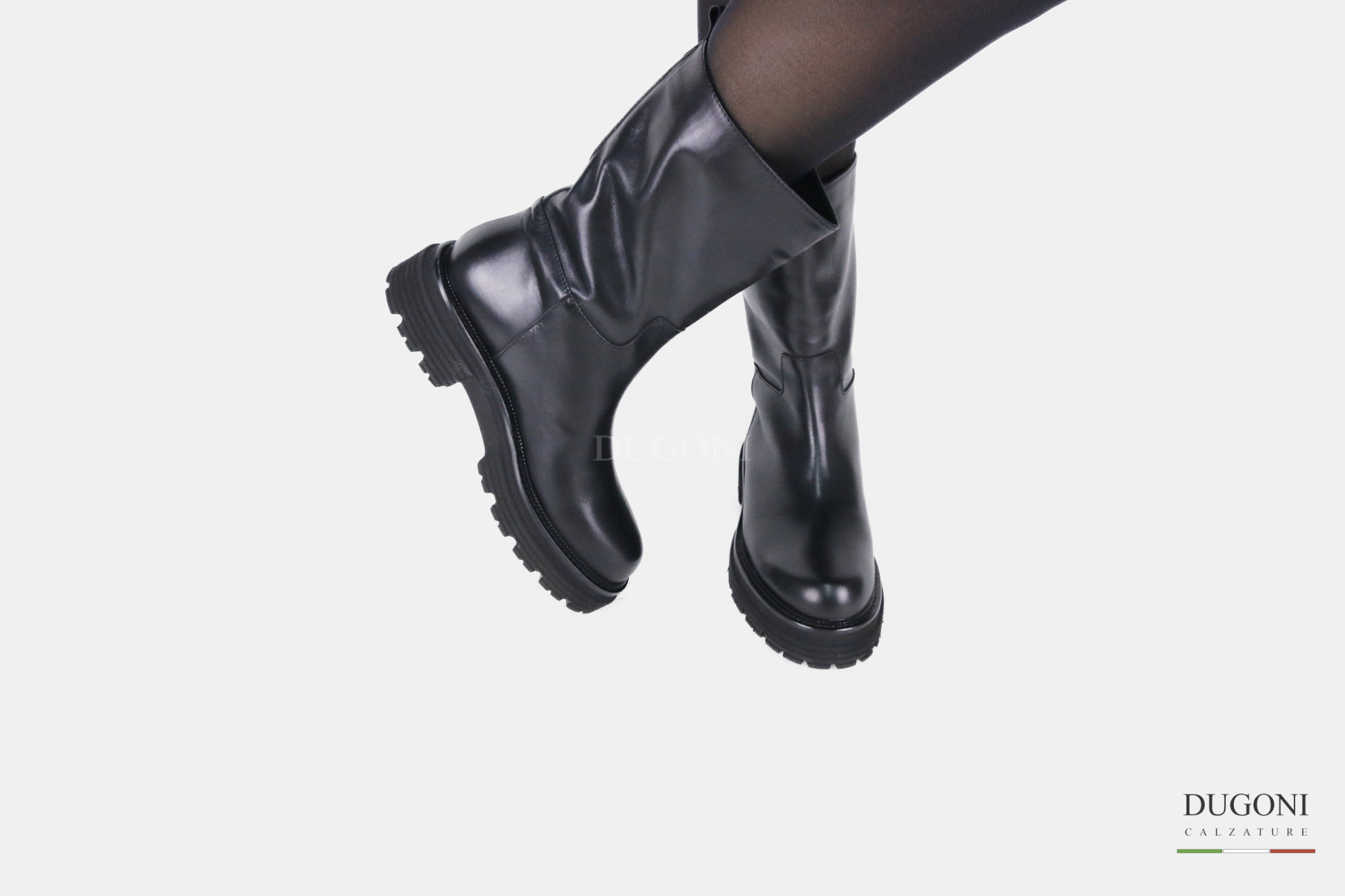 Stivale a tubo in pelle nera. Suola carrarmato gomma extralight .