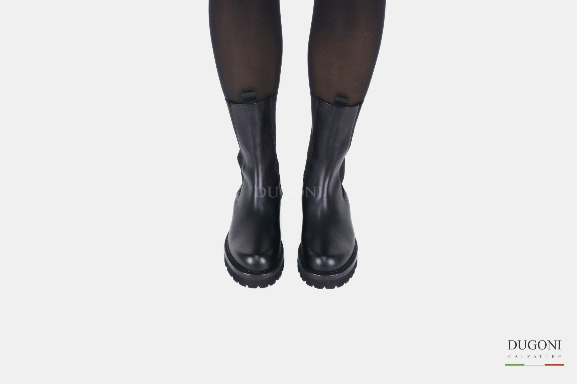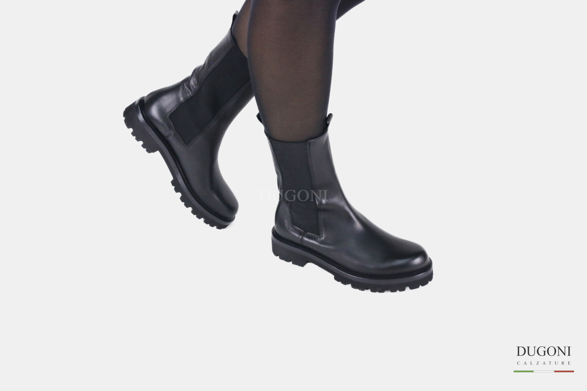 Stivale elastici in pelle nero. Suola carrarmato gomma extralight .