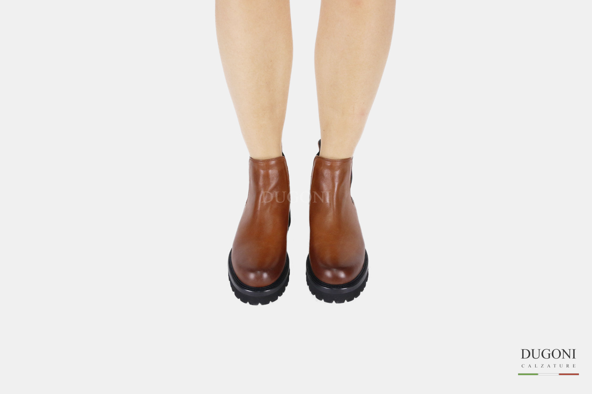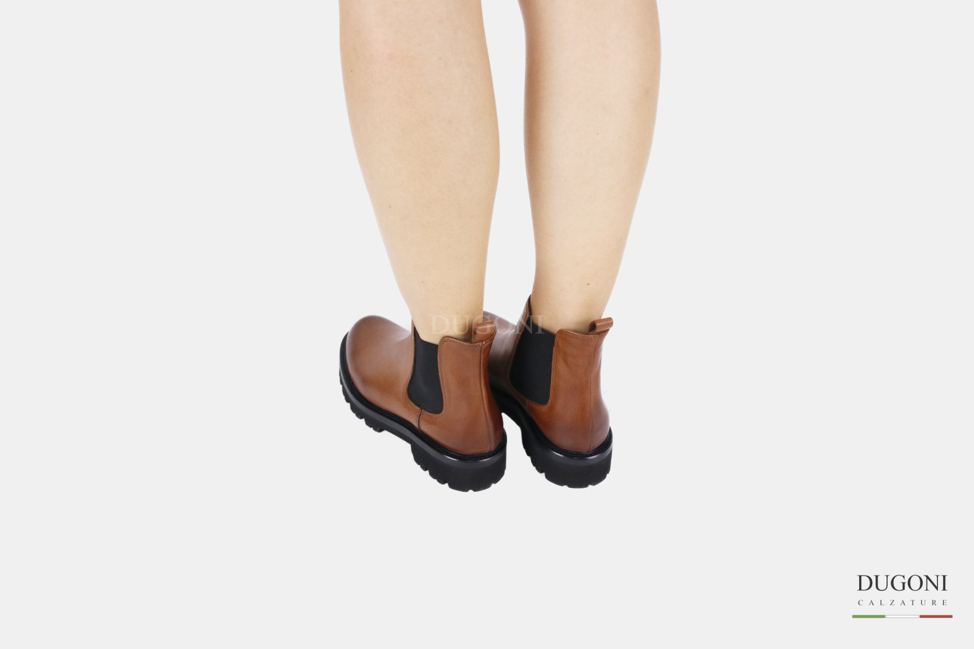 Stivaletto elastici in pelle marrone cuoio. Suola carrarmato gomma extralight .