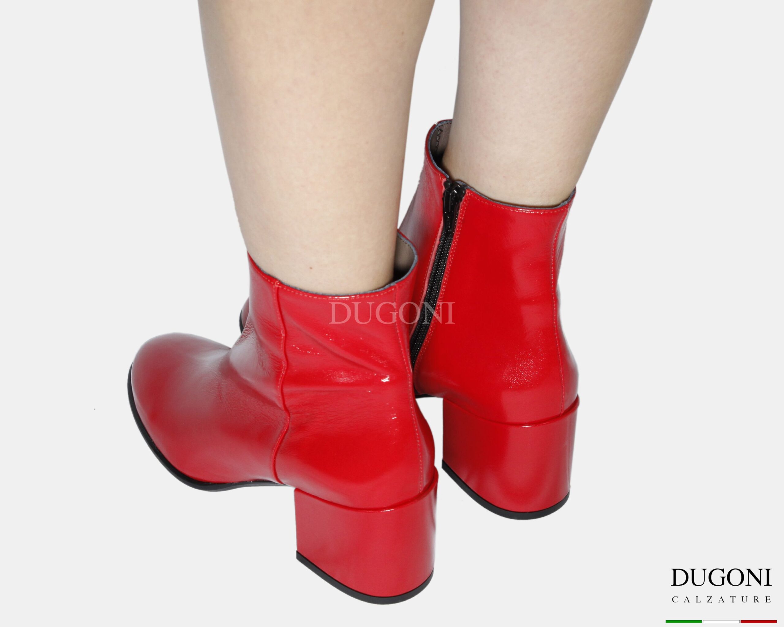 Stivaletto in pelle verlux rosso con tacco ricoperto in tinta. Altezza gambale cm 11,5 . Cerniera laterale . Suola in gomma.