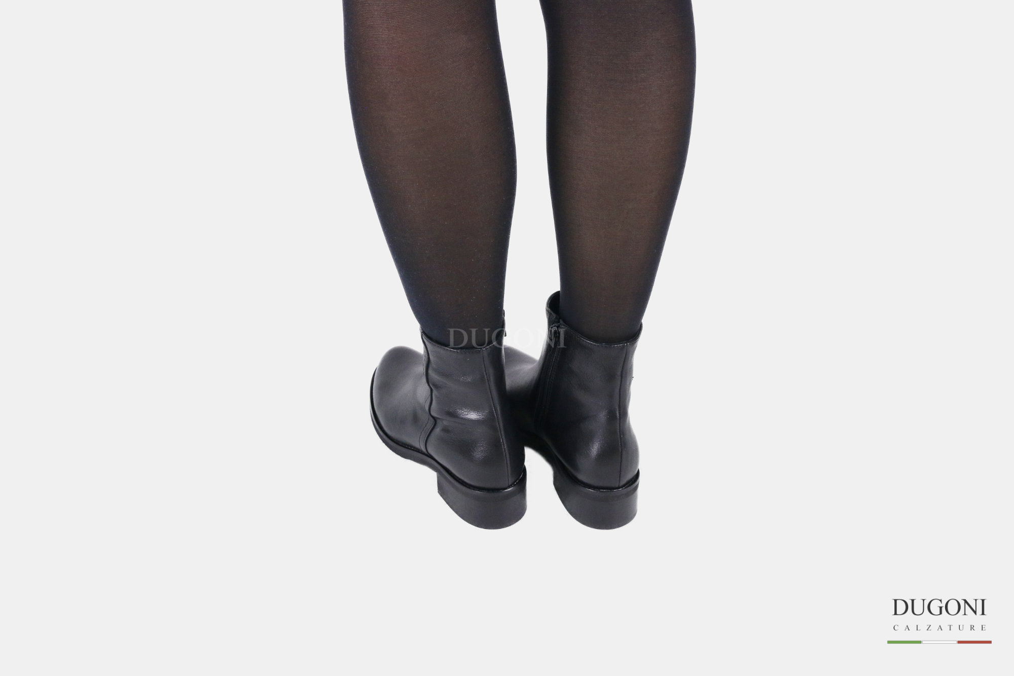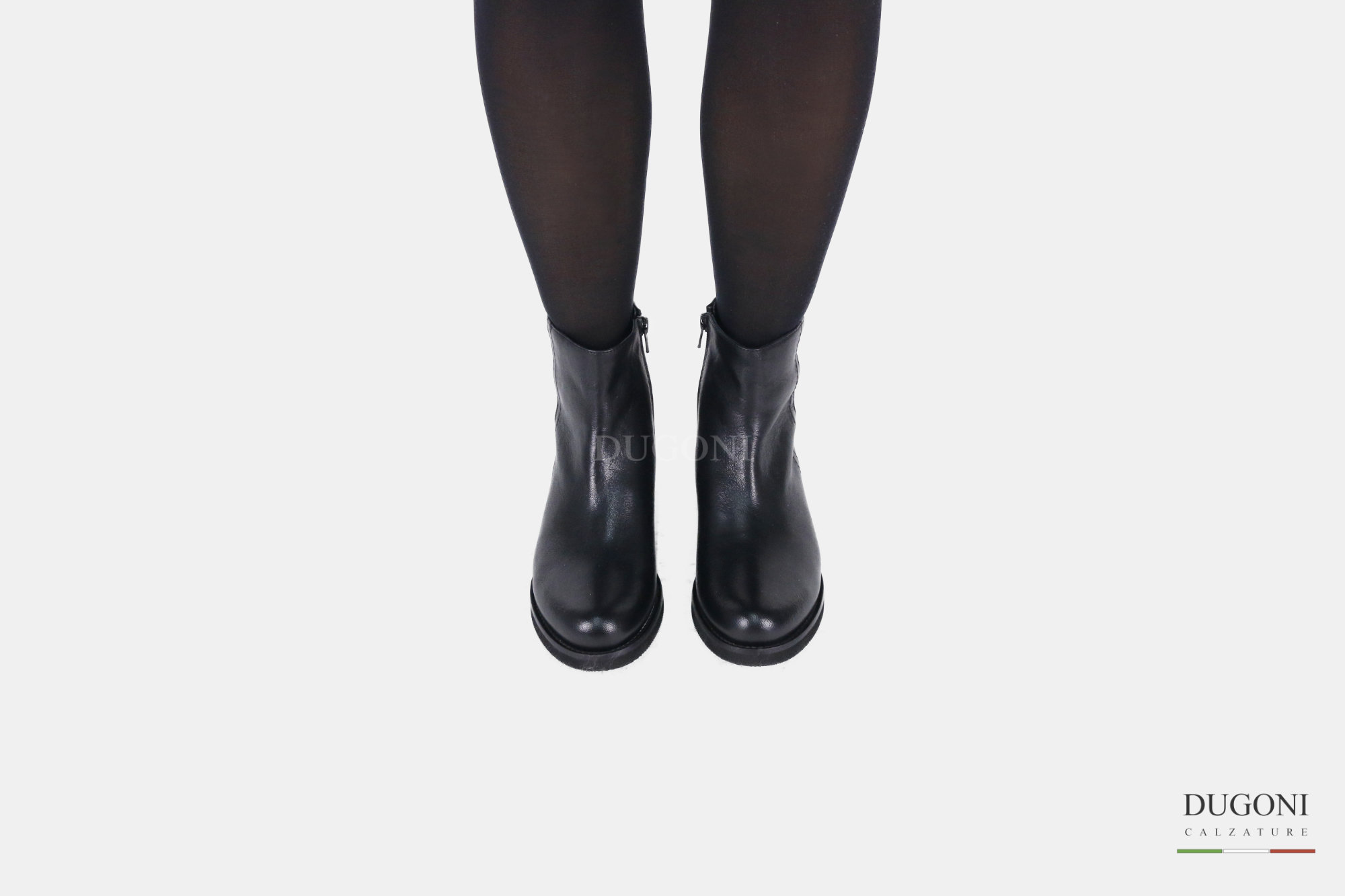 Stivaletto in pellenappa  nera con cerniera interna. Suola in gomma, tacco cuoio.