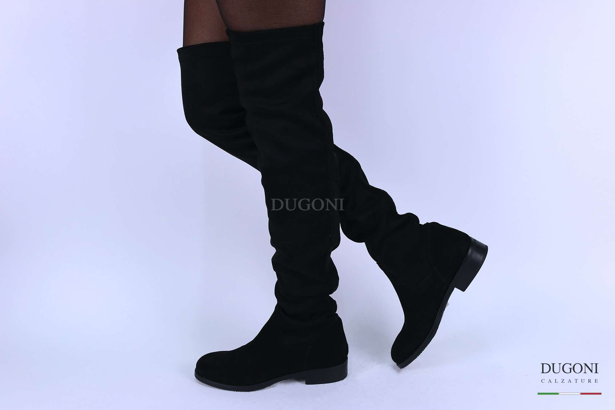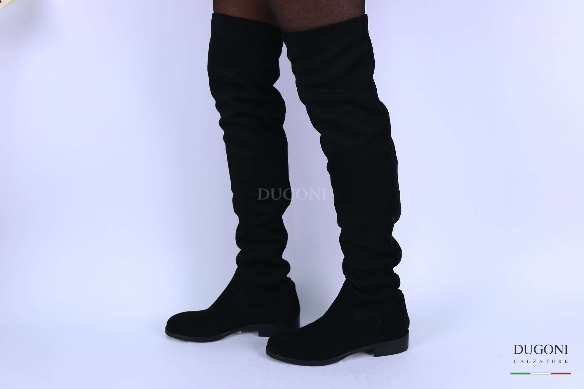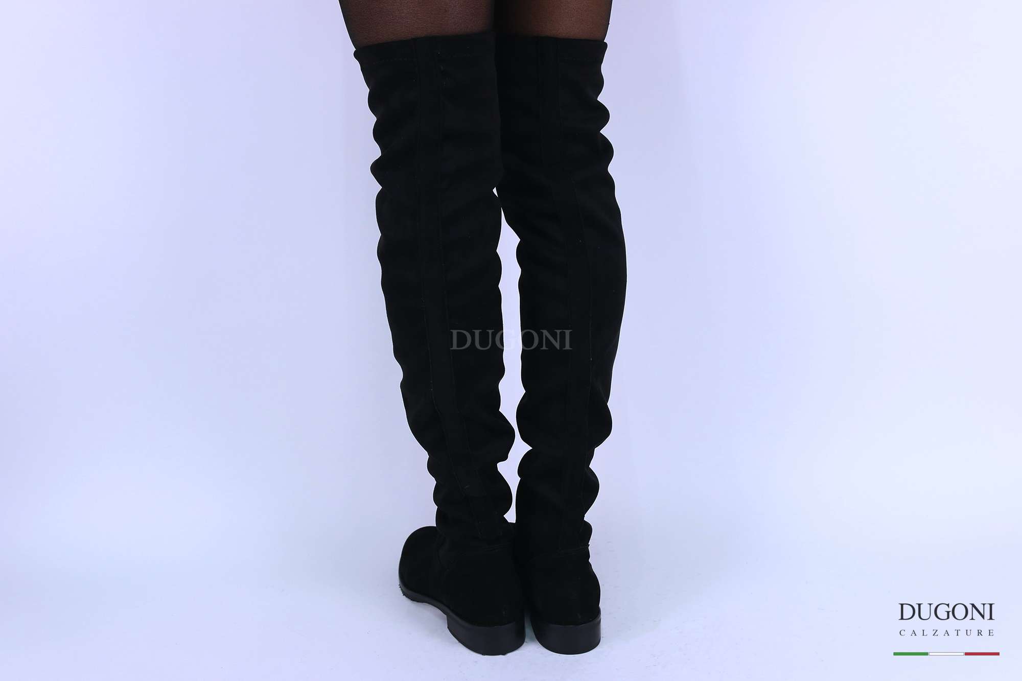 Stivale cuissard – sopra il ginocchio – in camoscio nero a calza (senza cerniere).
